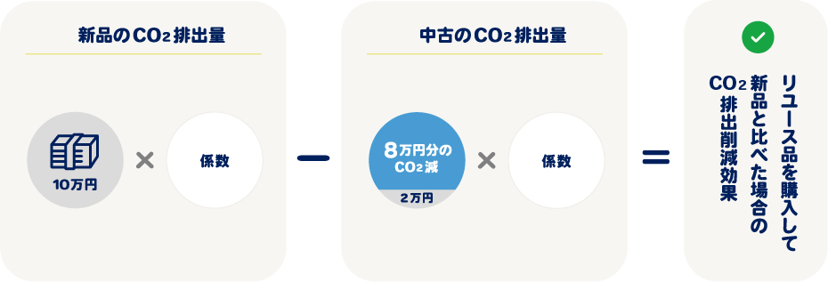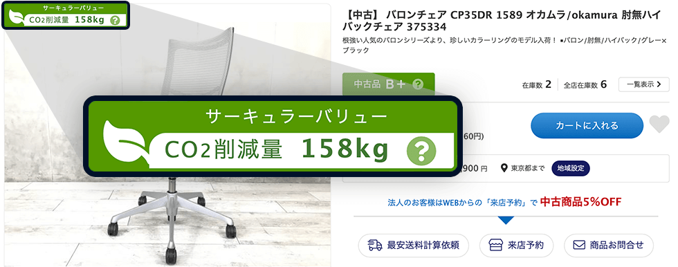 ECサイトでは主要な商品にCO2削減量を表示するなど、リユース品活用による