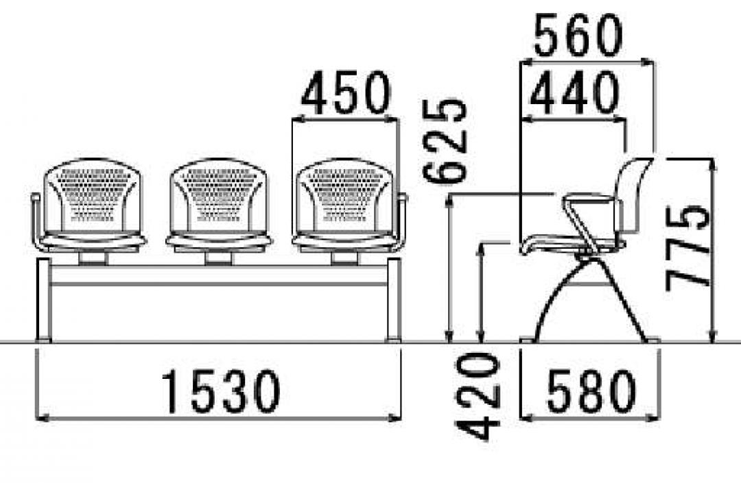 【スタイリッシュ】ロビーチェア 3人用 肘なし