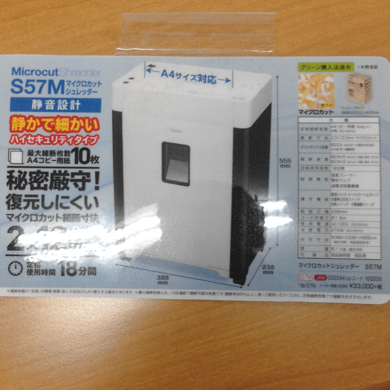 ・定格細断枚数:9枚(A4コピー用紙 50/60Hz)