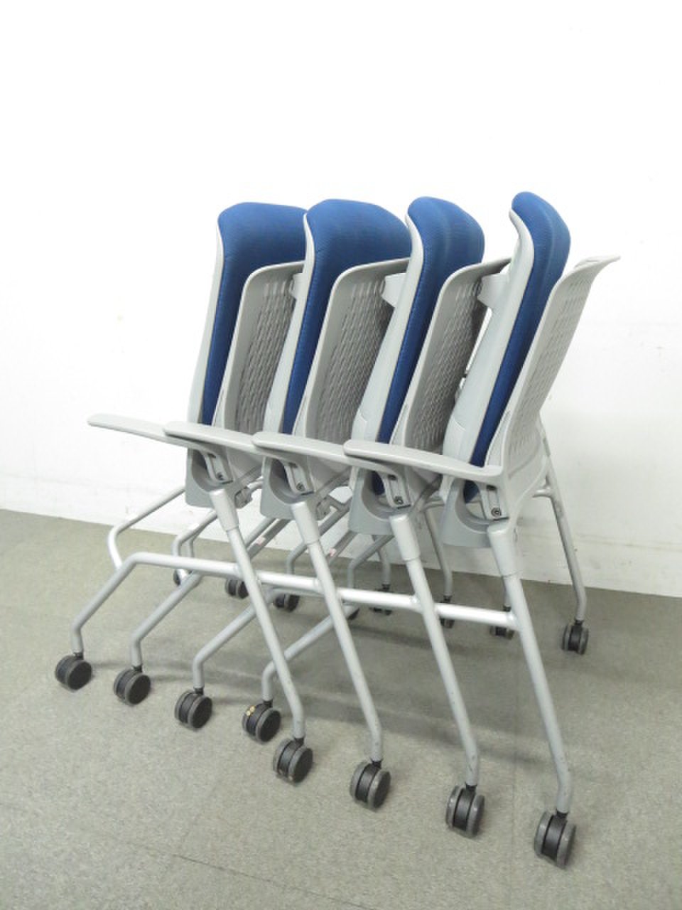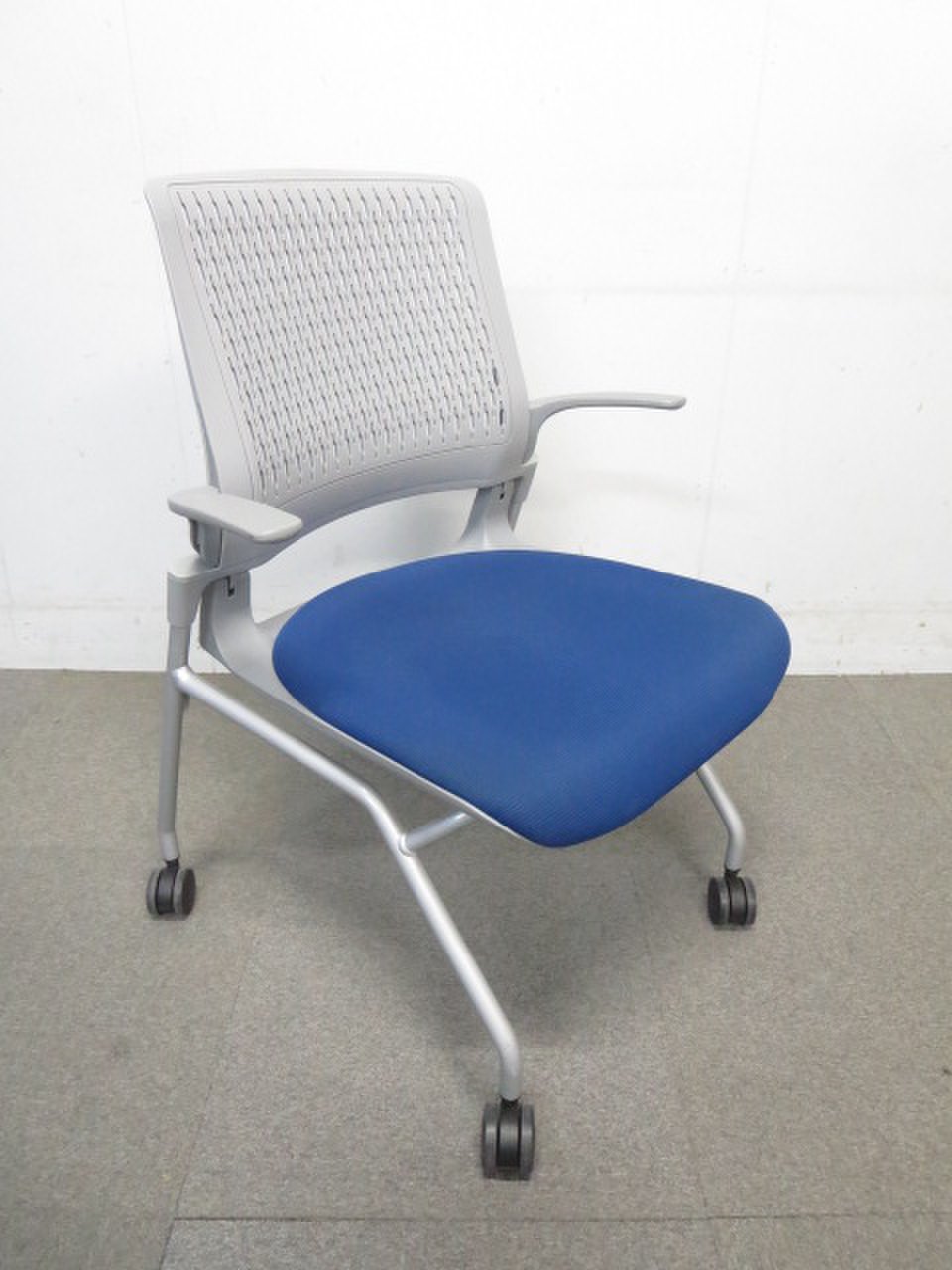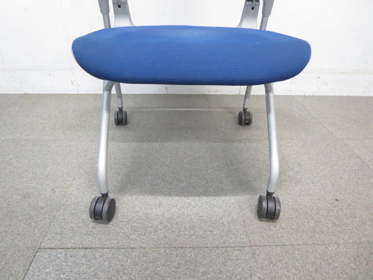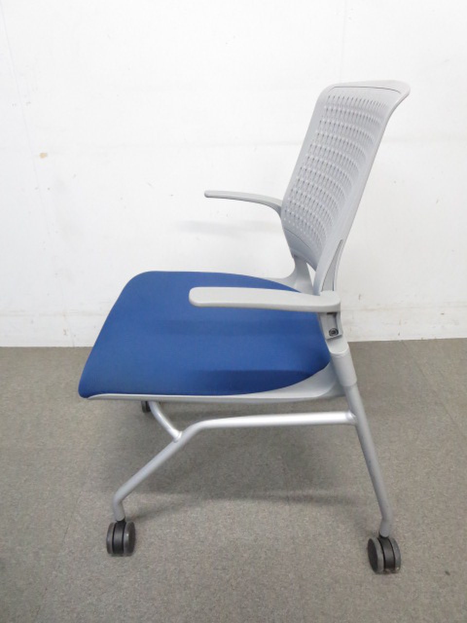 【ふっくら快適クッション!】■コクヨ製 ネスティングチェア 肘付 ■オルディナシリーズ ブルー【おつとめ品】- 川崎店