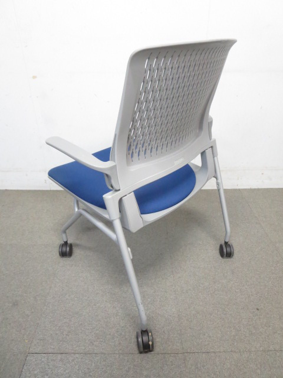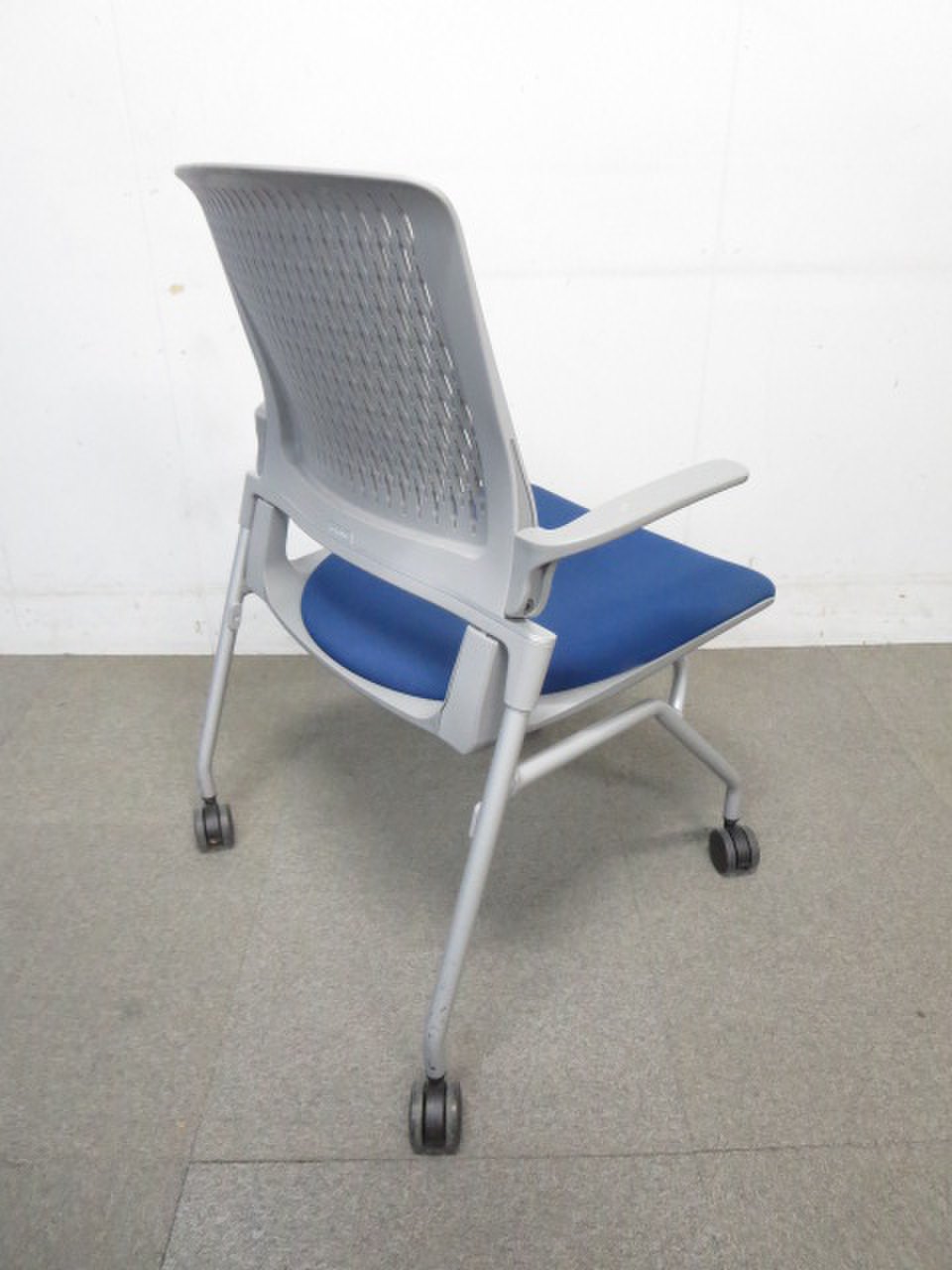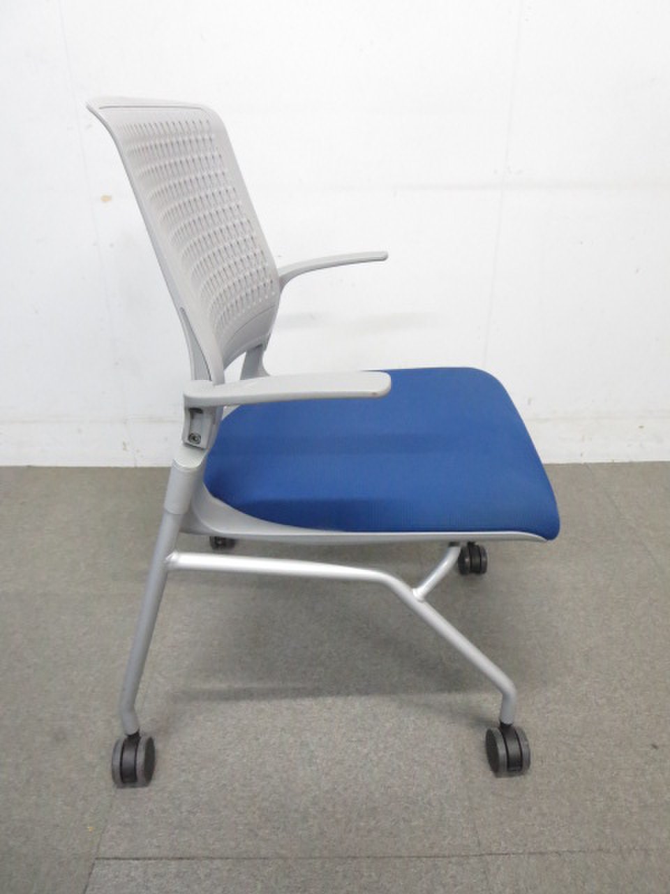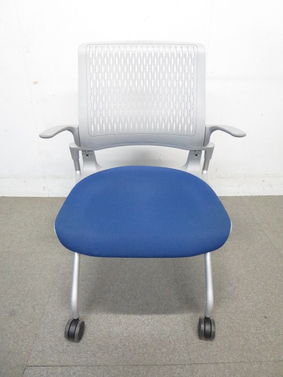 【ふっくら快適クッション!】■コクヨ製 ネスティングチェア 肘付 ■オルディナシリーズ ブルー【おつとめ品】- 川崎店