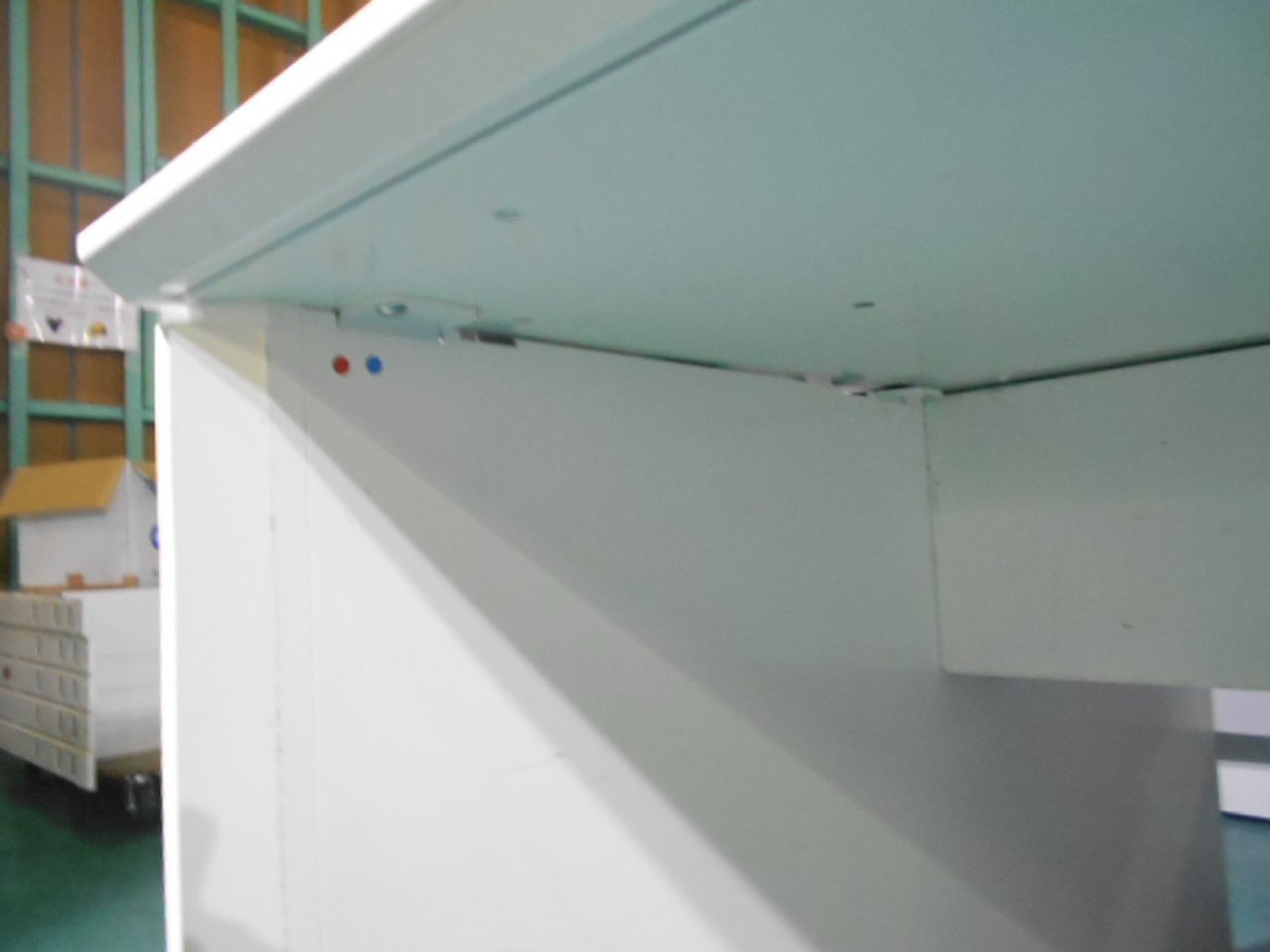 ▲中古デスク【事務机】コーナー ロット在庫や売れ筋商品も展示しています。 中古フリーアドレス・中古L字デスクもご用意可能