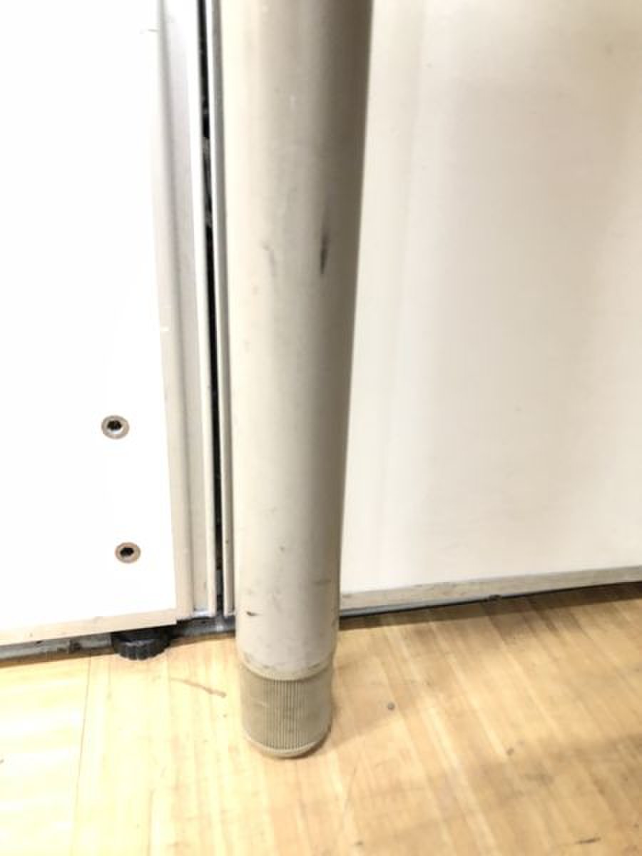 - 一部不具合あり天板歪み、アジャスター無し、キャスター使用不可ようなそのテーブルの本来の効用を果たすための機能以外の一部が使用不可な状態。(例、キャスターロッ ク機能使用不可、棚板無し等がある。)