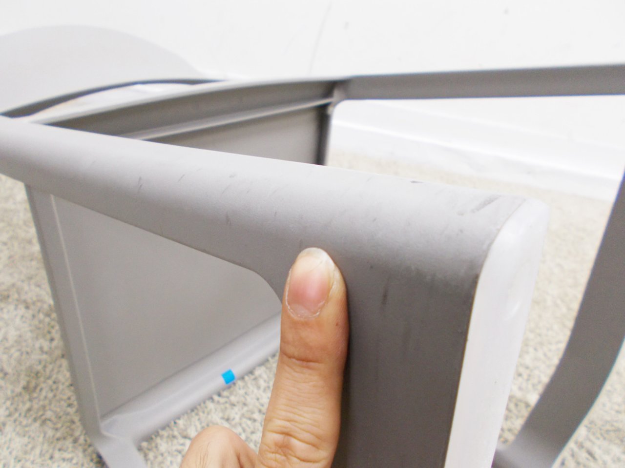 - 目立つ箇所あり傷・破れ・ほつれ・へたり・しわが多数または深い傷・破れ・ほつれ・へたり・しわが一部ある。※座面・背もたれ、シェル、脚部等にある。