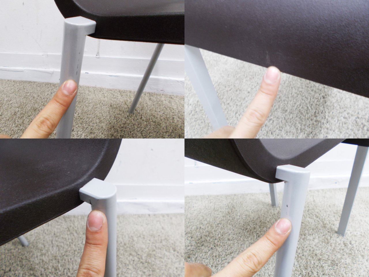 - 目立つ箇所あり傷・破れ・ほつれ・へたり・しわが多数または深い傷・破れ・ほつれ・へたり・しわが一部ある。※座面・背もたれ、シェル、脚部等にある。