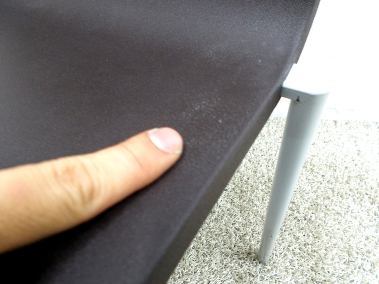 - あり黄ばみ・変色が広い範囲にうっすらある、または濃い黄ばみ・変色が一部ある。(例、座面・背もたれ、脚部等にある。)