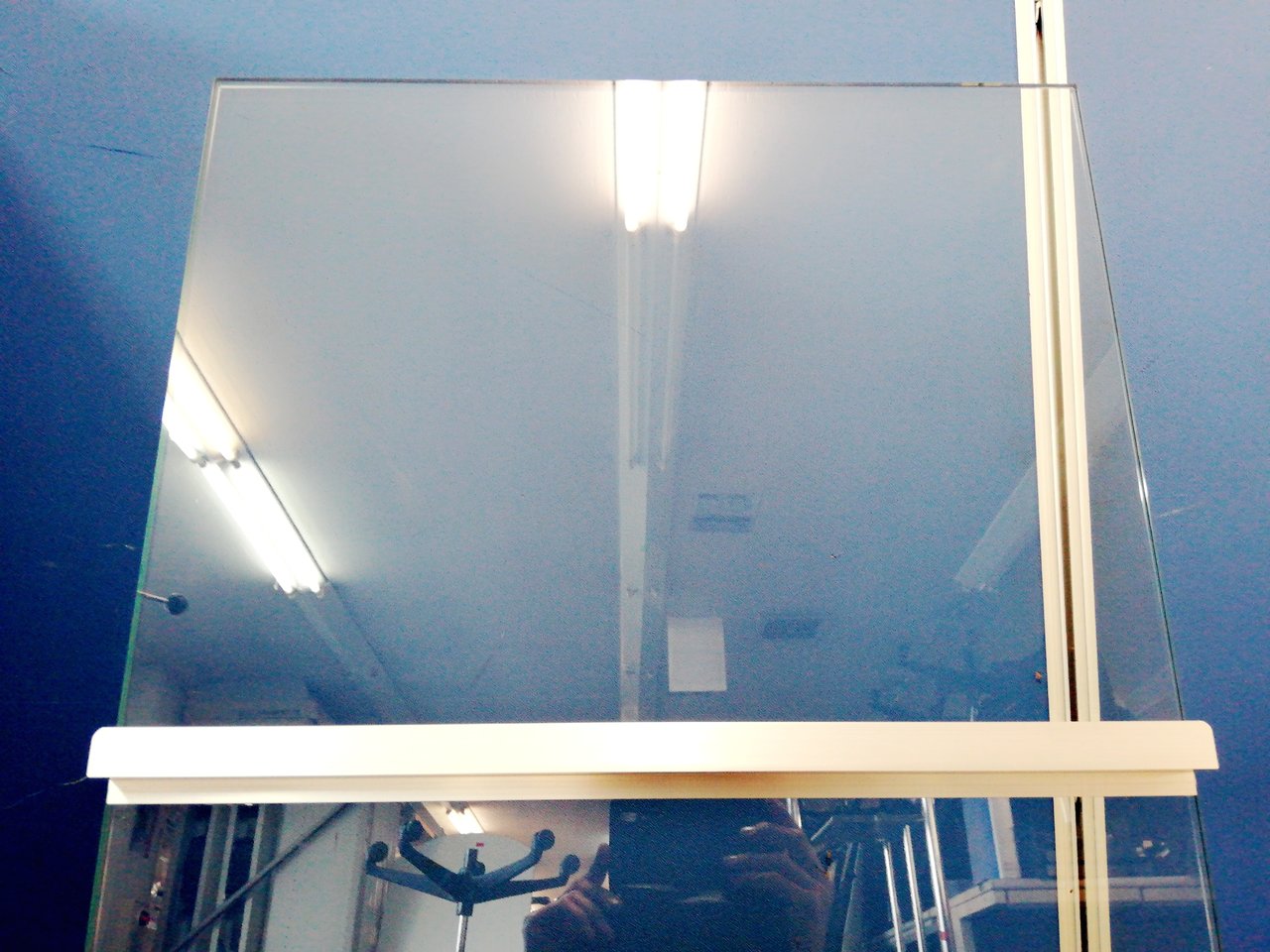 本体は強化ガラス(8mm)、飛散防止フィルムが張られております。