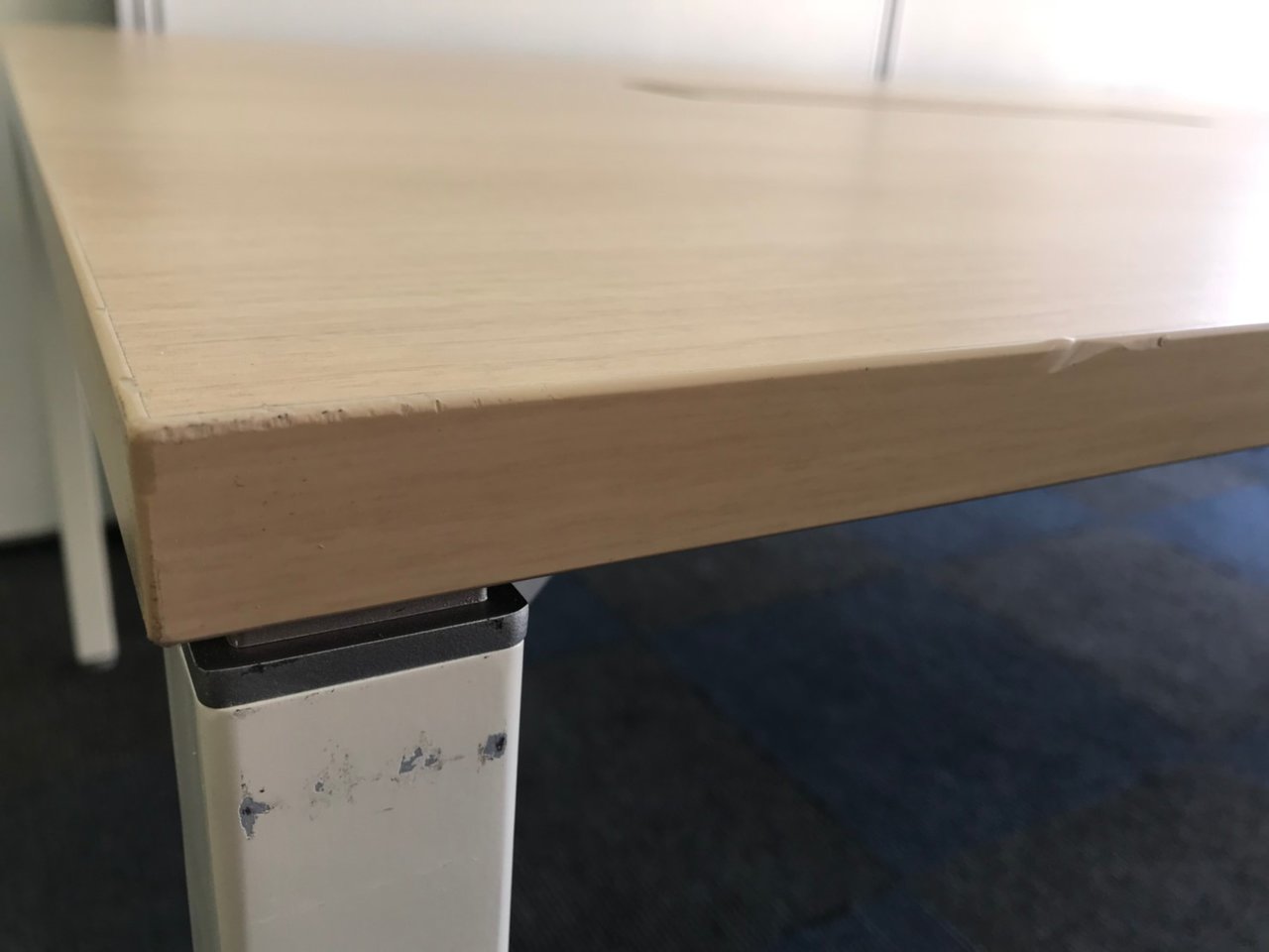 - 壊れている天板歪み、アジャスター無し、キャスター使用不可のようにそのテーブルの本来の効用を果たすための機能に不具合がある。