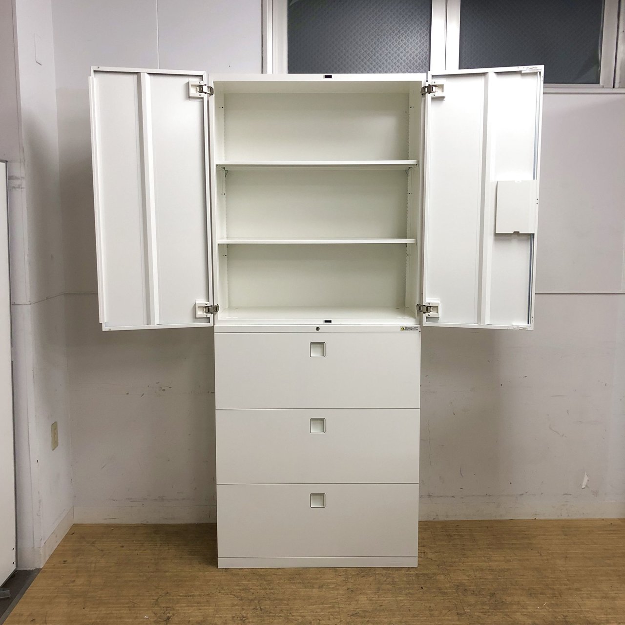 【上下書庫セット】【両開き(上)×3段ラテラル(下)】【オカムラ】【レクトライン】【ホワイト】【4台】