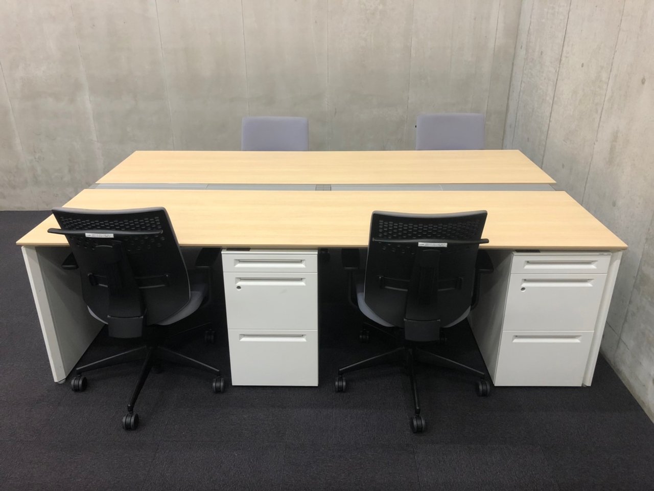 【4人用のオフィスワークに最適!】■オカムラ製 フリーアドレスデスク W2400mm ■プロユニットフリーウェイ 木目柄ナチュラルカラー