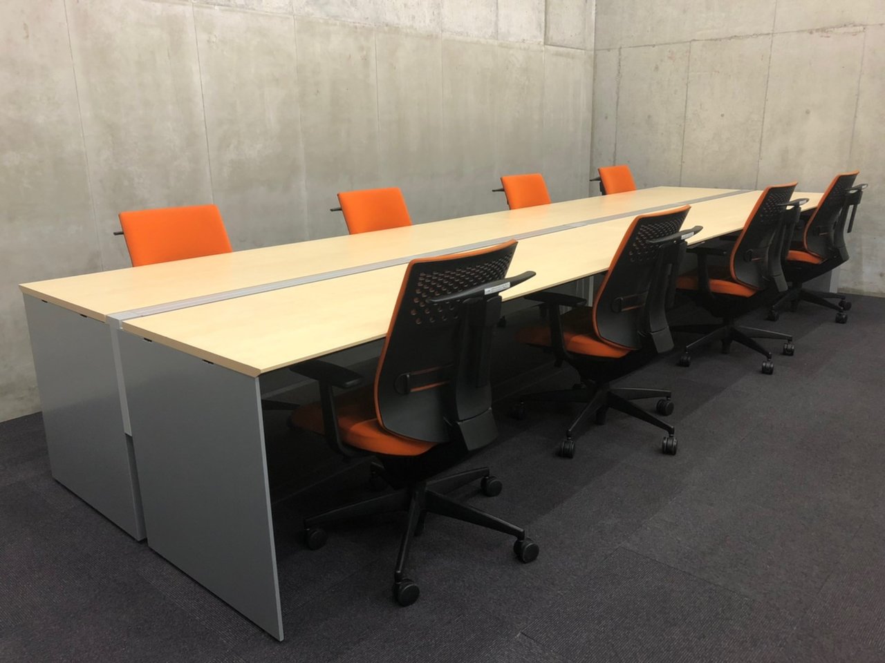 【フレキシブルなワークスタイル!】■コクヨ製 フリーアドレスデスク ナチュラル W4800mm【8人席】