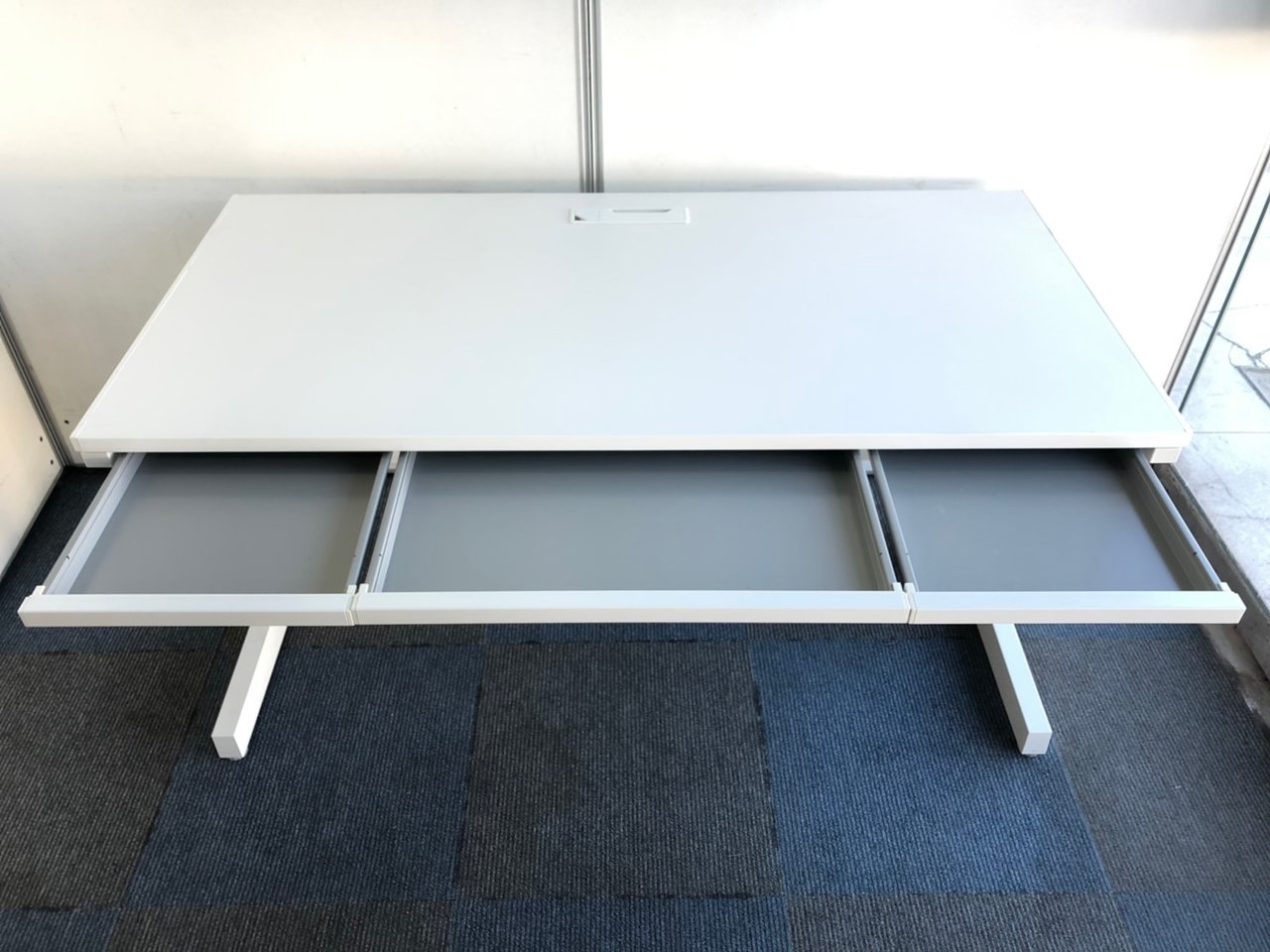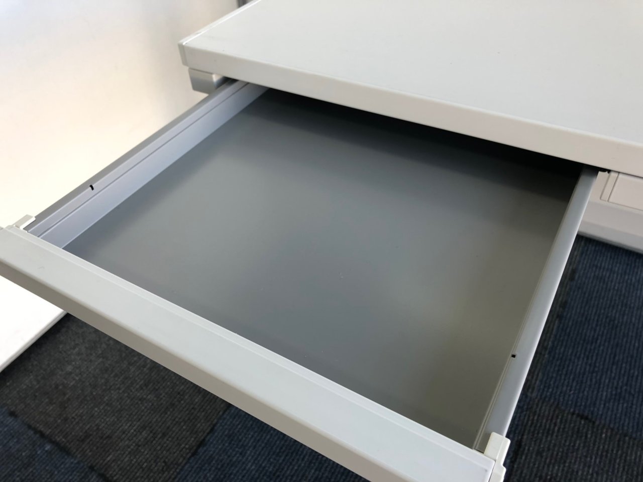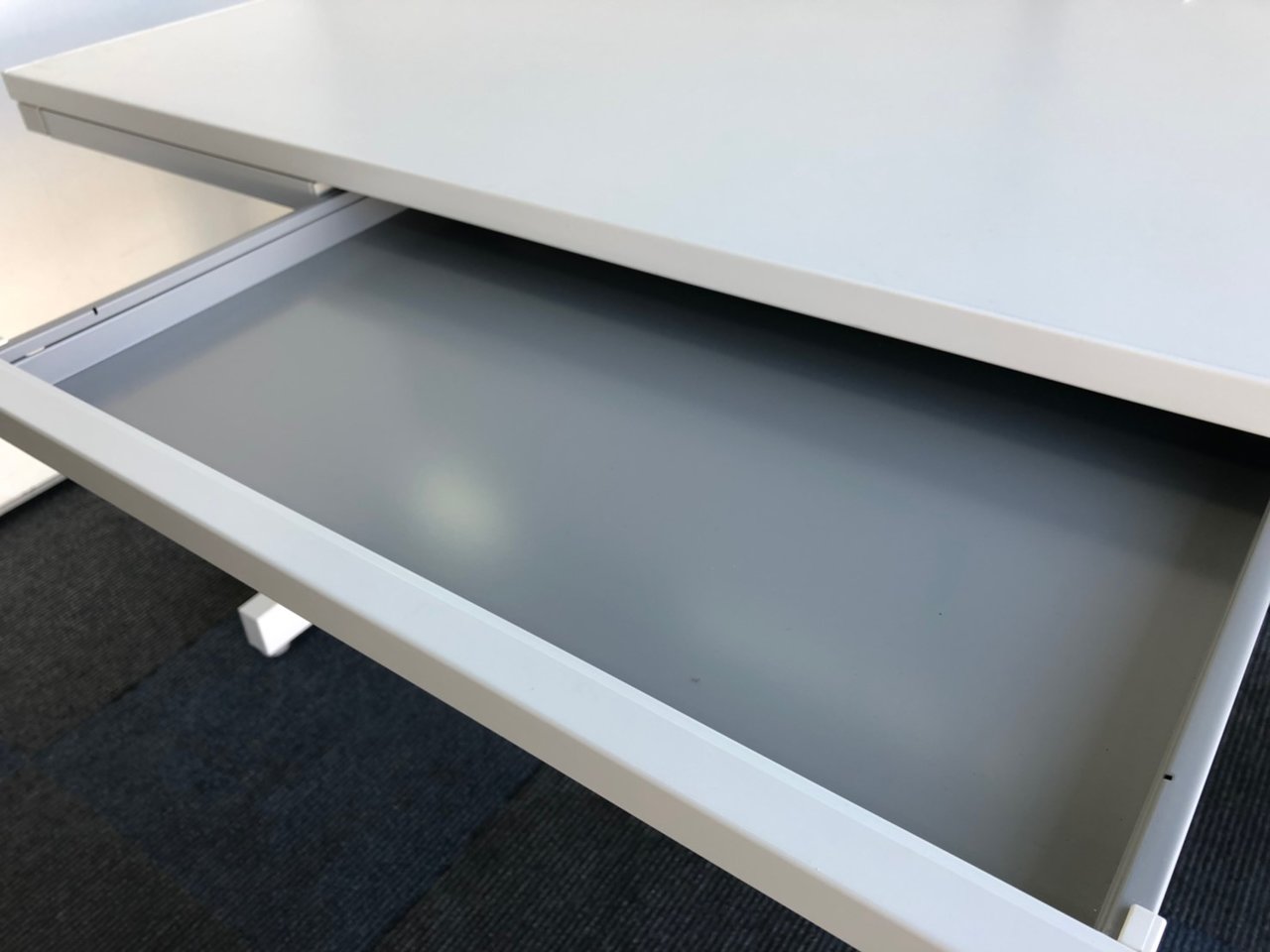 こちらのデスクには薄い引き出しが3個付いてます。