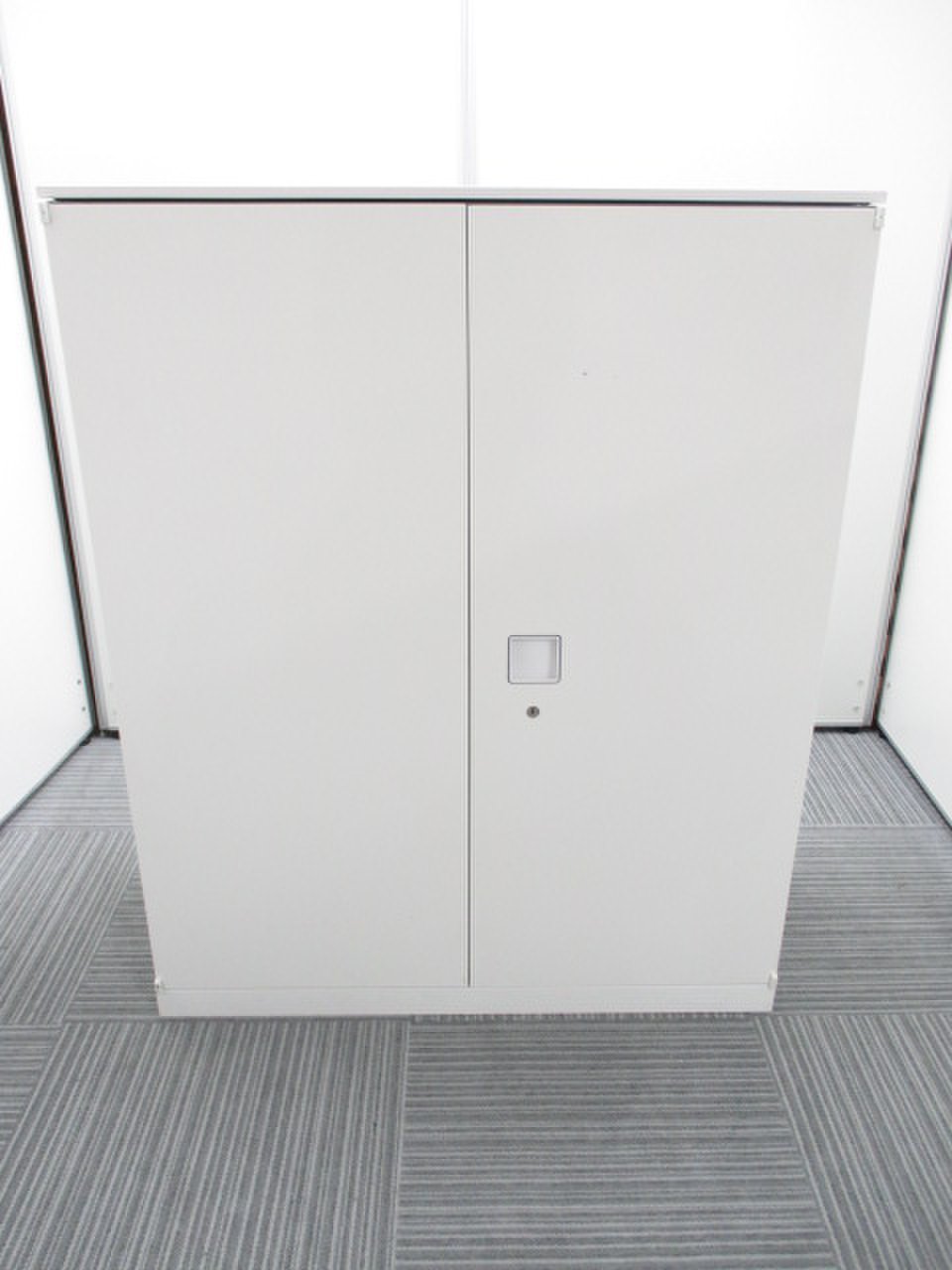 【定価約9万円!!マルチアクセスハンドルで開閉がラクラクです!!ホワイトカラー両開き書庫!!オシャレな天板付き!!】■オカムラ■レクトライン