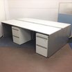 ▲中古デスク【事務机】コーナー ロット在庫や売れ筋商品も展示しています。 中古フリーアドレス・中古L字デスクもご用意可能