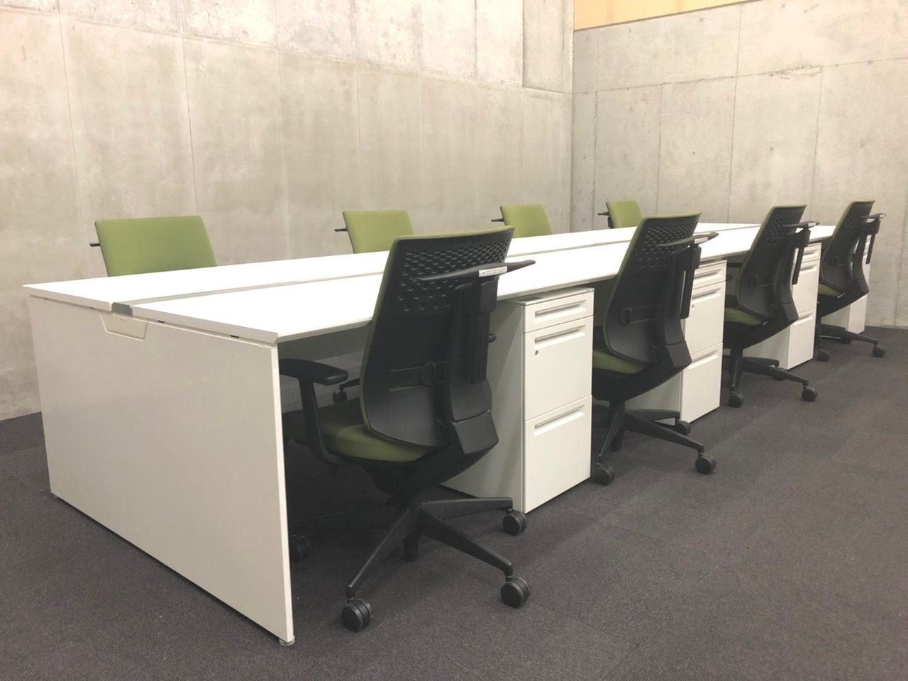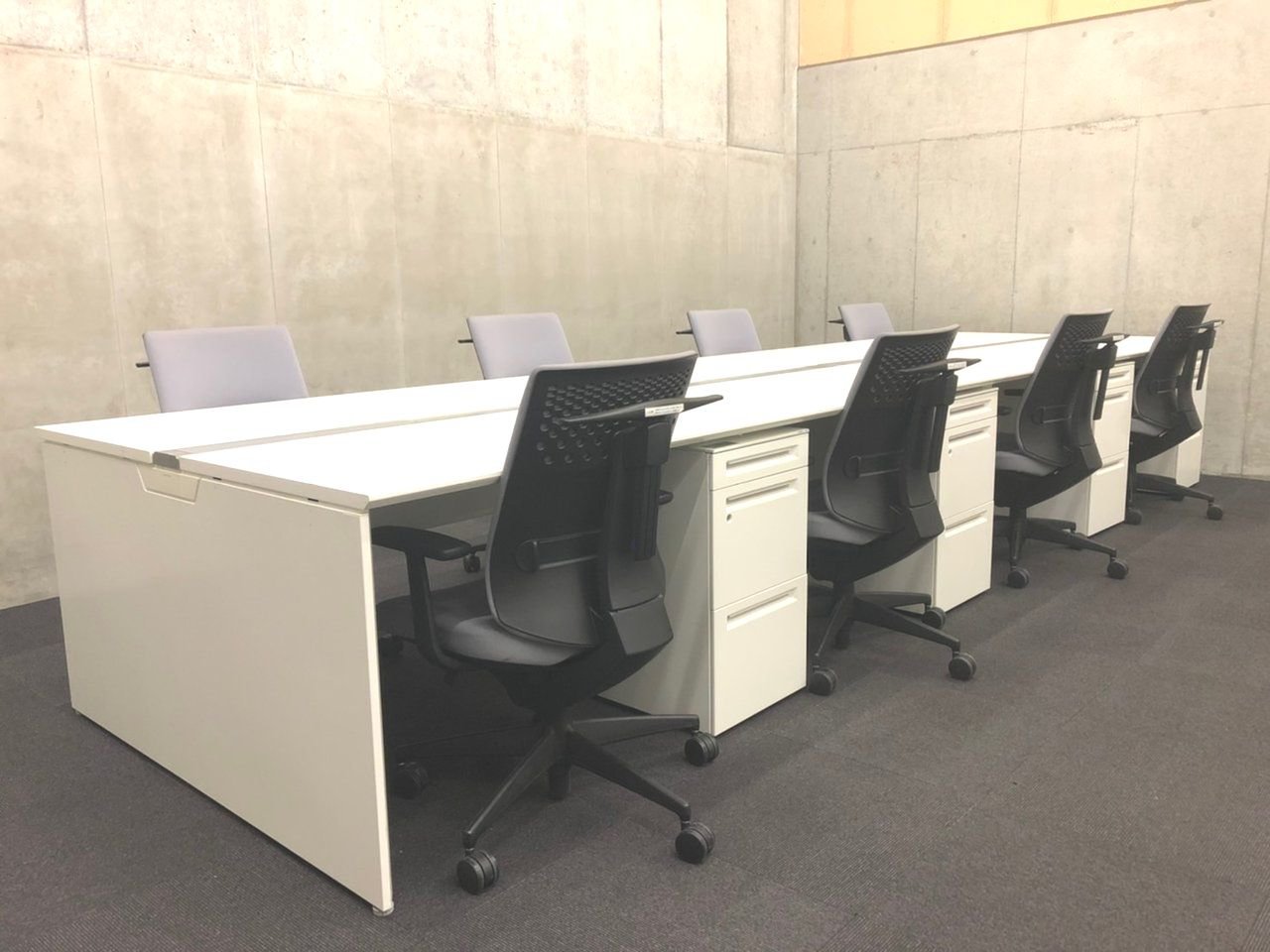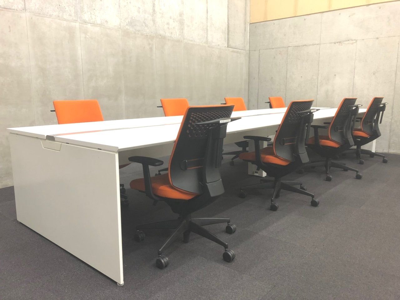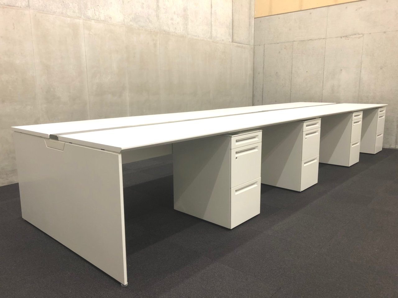 8名対応の大型デスク/この機会に最新のデスクを導入いかがでしょうか/オカムラ/ホワイトのフリーアドレス■柏倉庫在庫