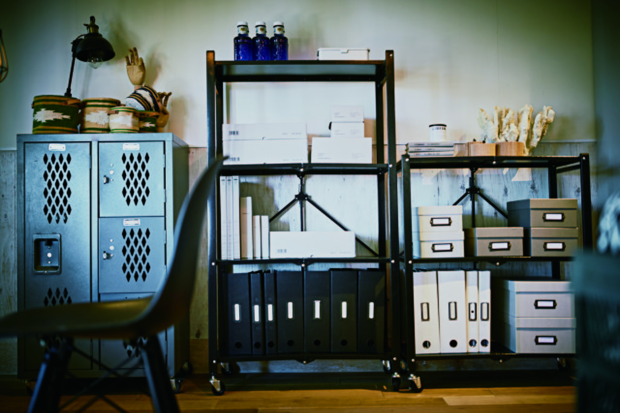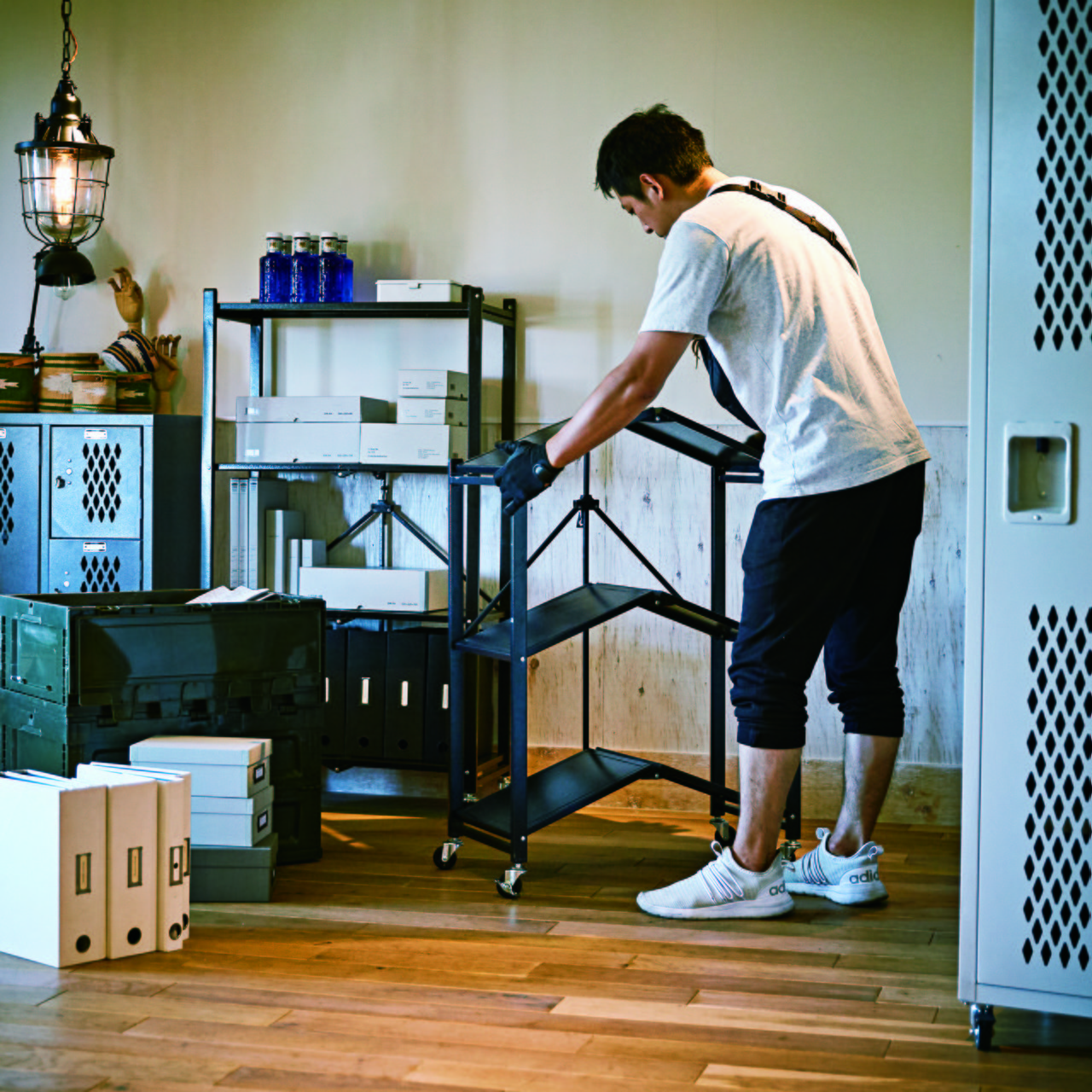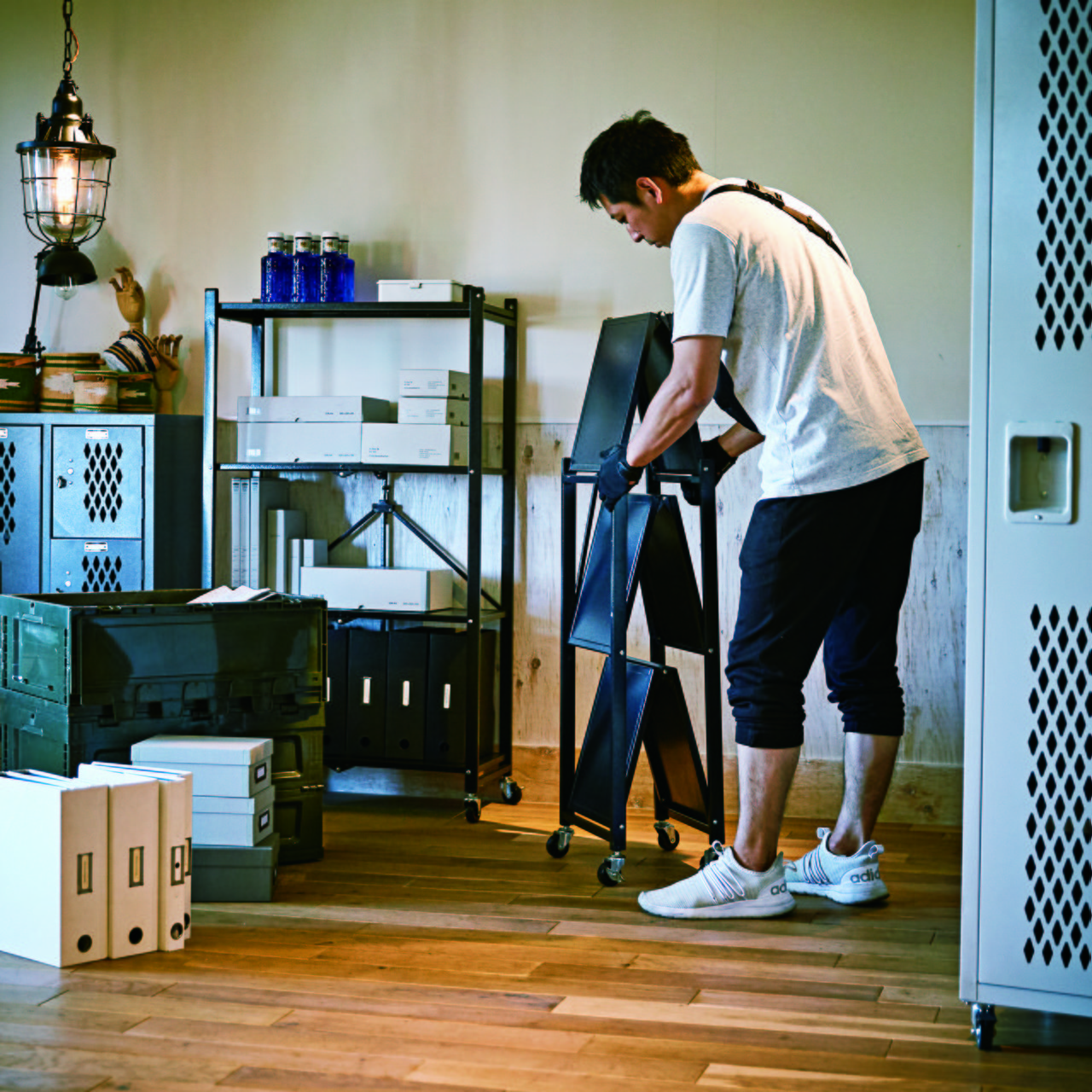広げればラックに、使わないときはたたんで片付けられるフォールディングラック。