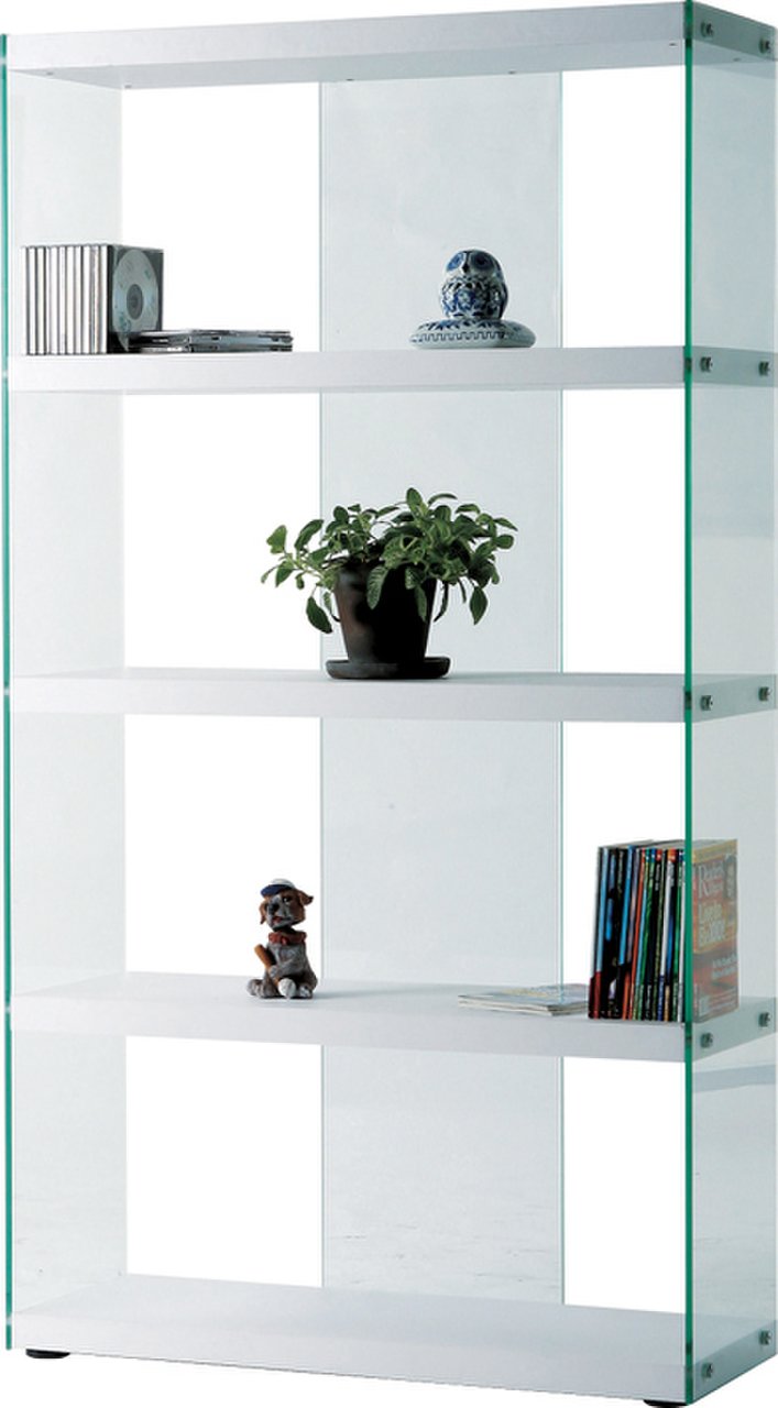 側面にガラスを採用し、圧迫感のないスッキリとしたデザインに仕上げたシェルフです。