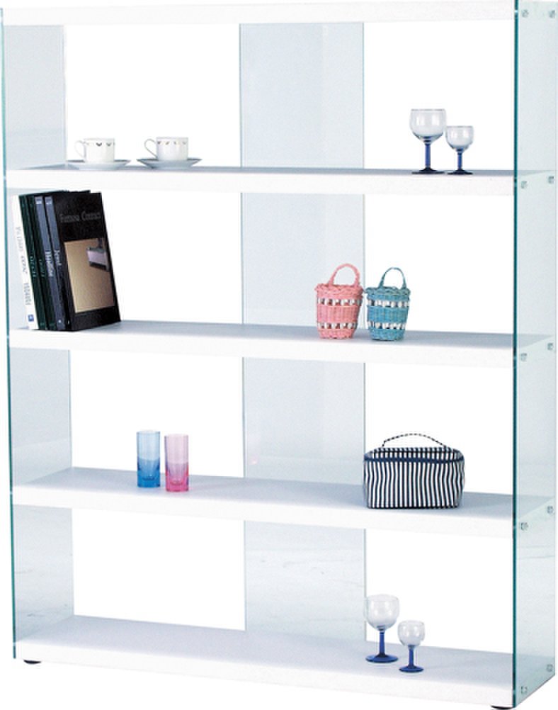 側面にガラスを採用し、圧迫感のないスッキリとしたデザインに仕上げたシェルフです。