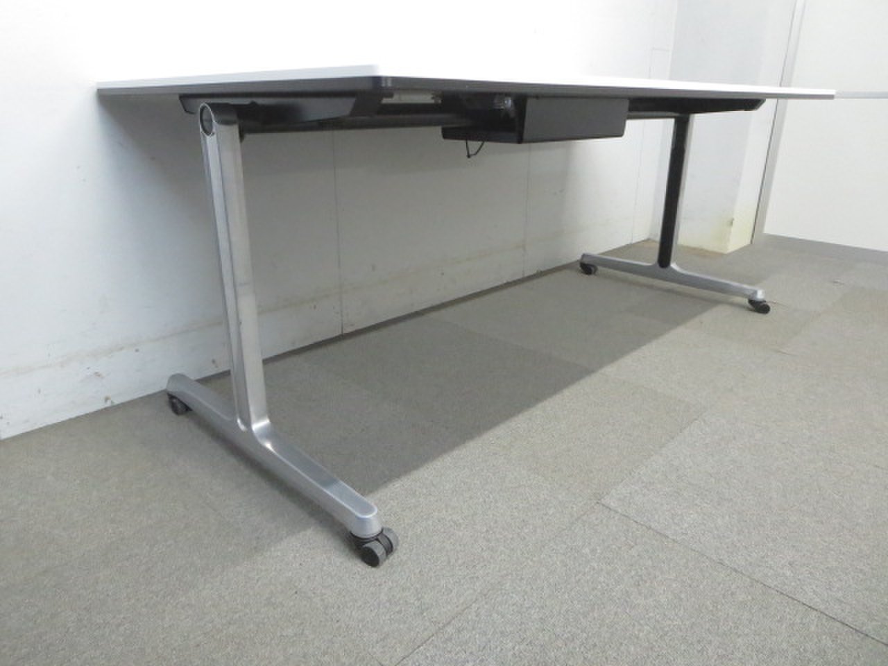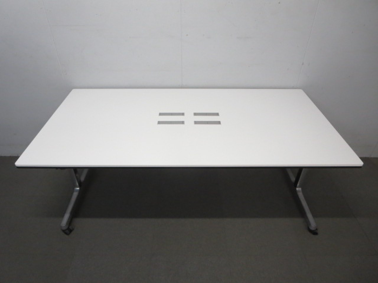 【フレキシブルに使えるキャスター付!】■オカムラ製 ミーティングテーブル W1800mm ホワイト■【パソコン使用に対応!】配線ボックス付!- 川崎店