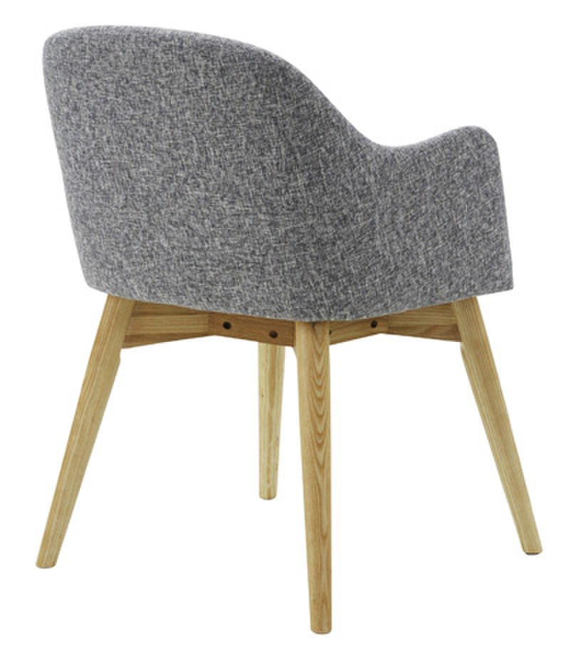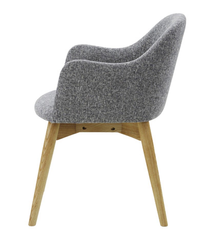背もたれとアームが一体になった身体をしっかり支えるダイニングチェア。