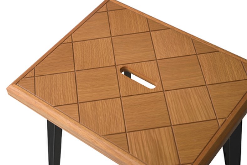 木版をチェッカーボードに組み合わせたレトロ・デザイン。脚はブラックのアイアンで、モダンテイストにも良く合います。