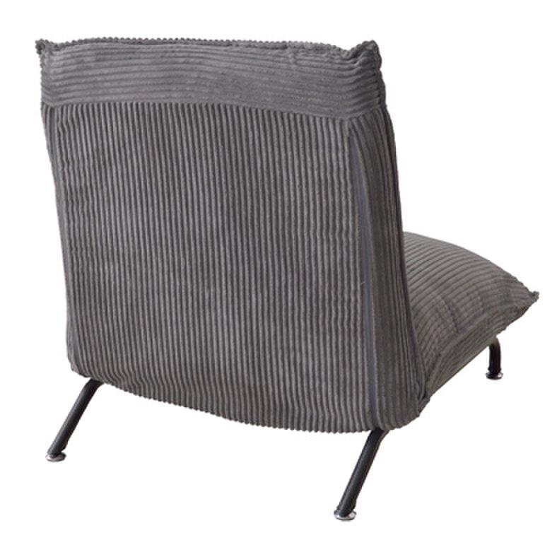 コーデュロイ生地はやわらかく優しい手触り、スチール脚でスッキリとした印象