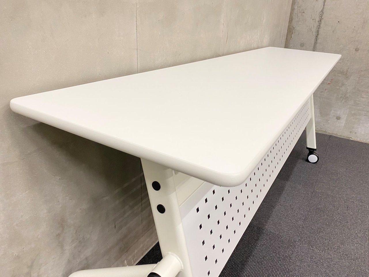 新品/会議用テーブル/折りたためる/フラップ式/キャスター付/ホワイト