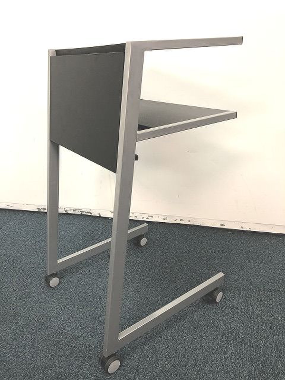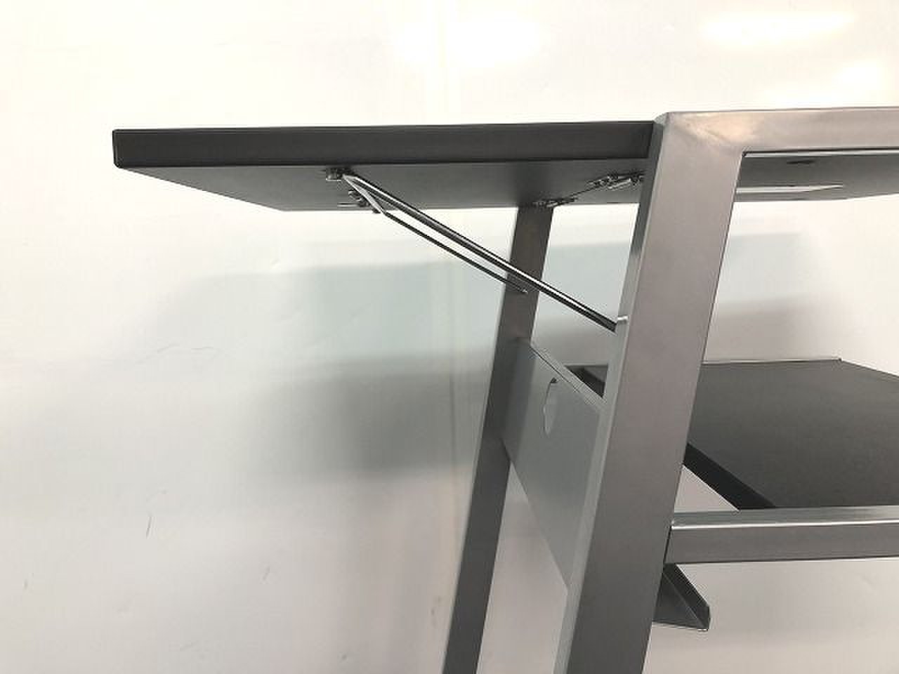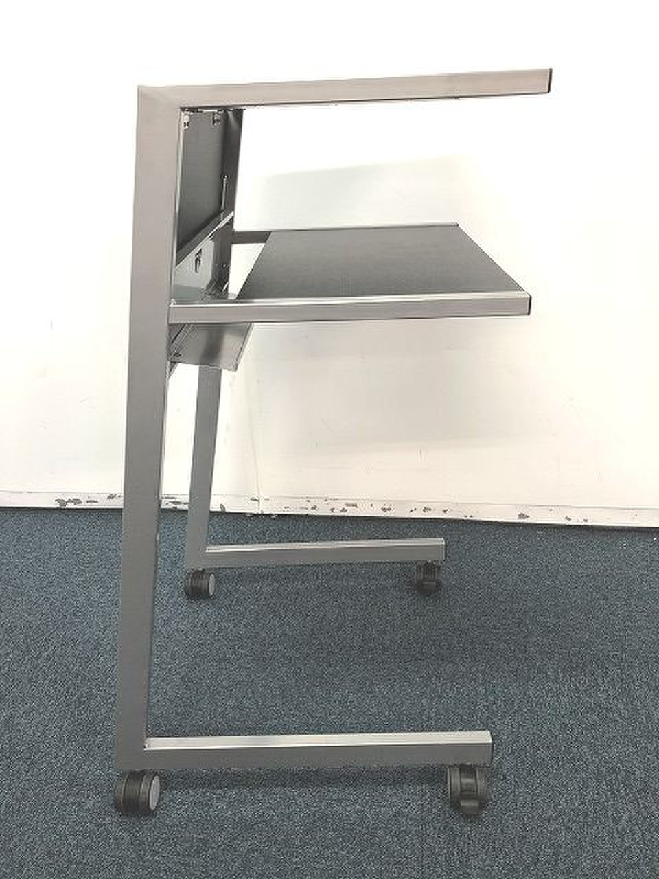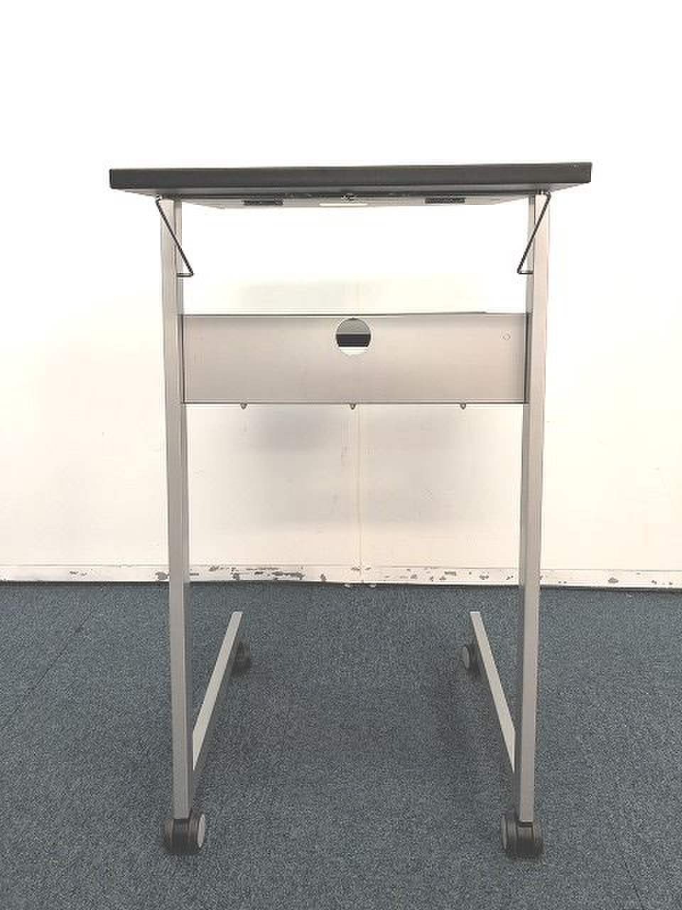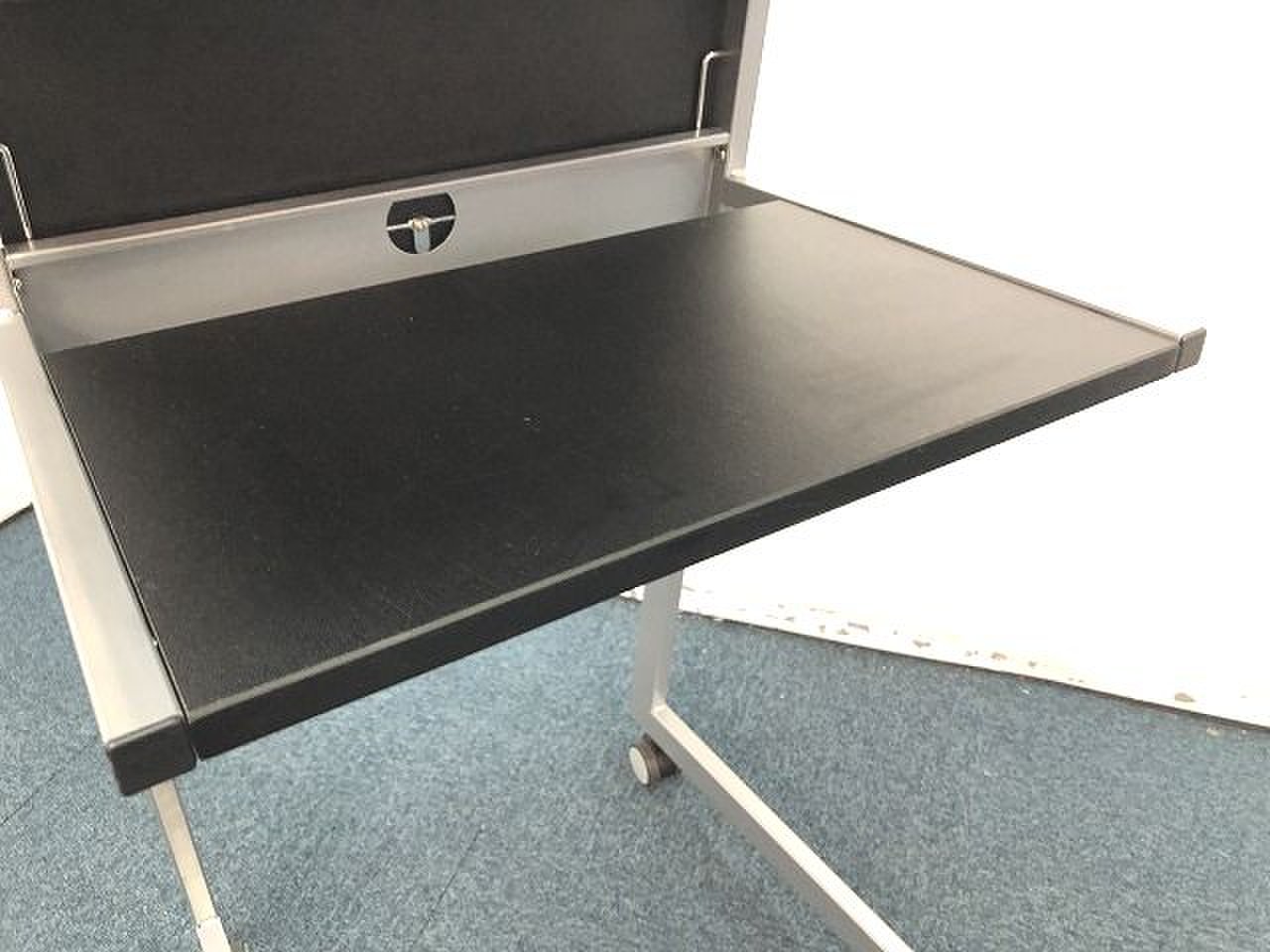 - 一部不具合あり天板歪み、アジャスター無し、キャスター使用不可ようなそのテーブルの本来の効用を果たすための機能以外の一部が使用不可な状態。(例、キャスターロッ ク機能使用不可、棚板無し等がある。)