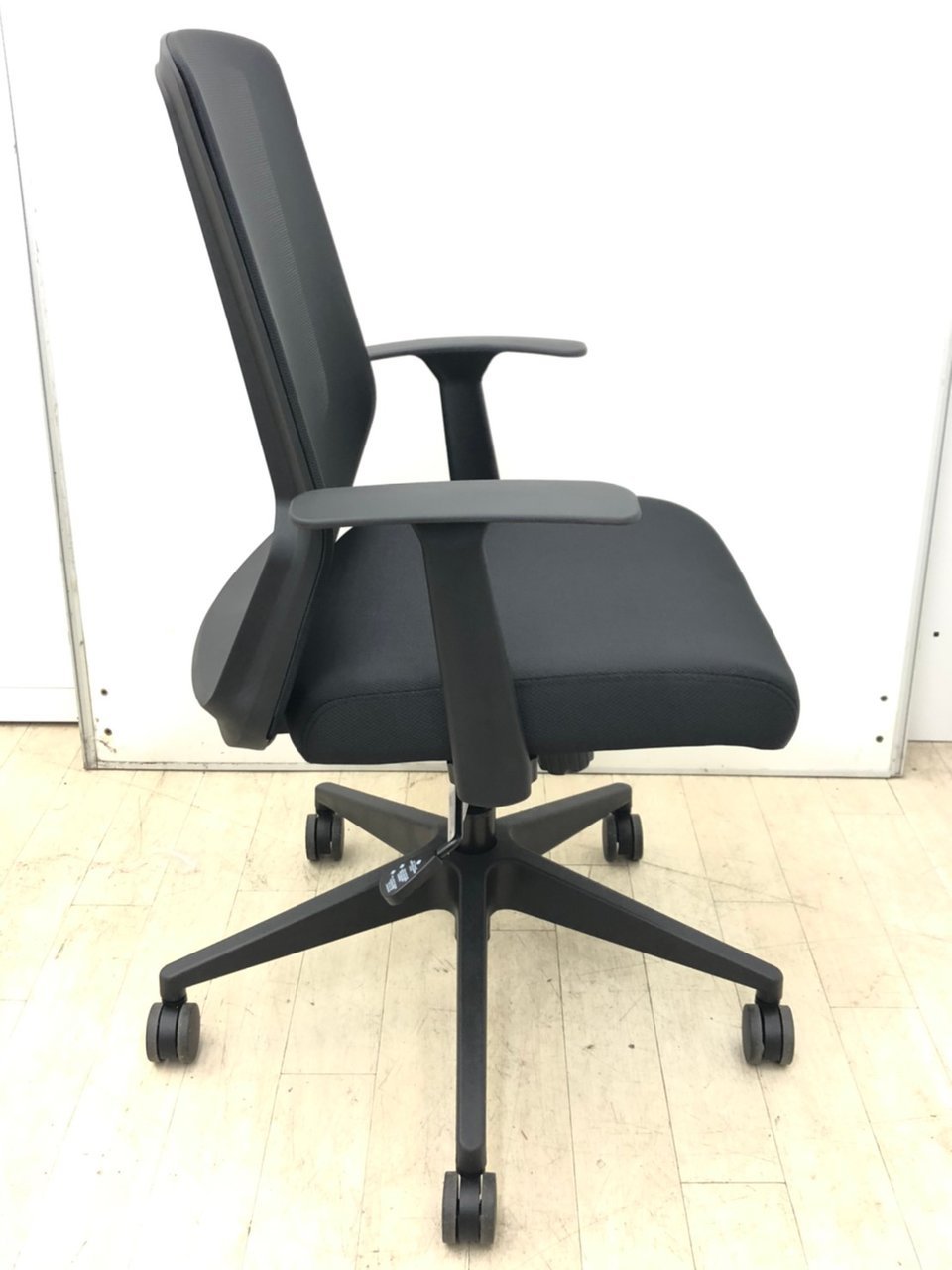 肘付きのブラックチェアです。