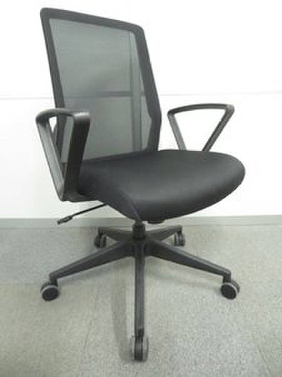 【柏倉庫在庫品】 新品事務椅子肘付き【美品】【メッシュチェア】ブラック/サークル肘新品