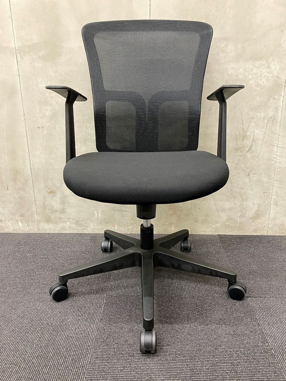 【柏倉庫在庫品】 新品/事務用椅子/肘付/T字タイプ【美品】【メッシュチェア】ブラック