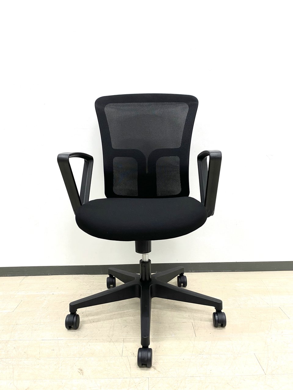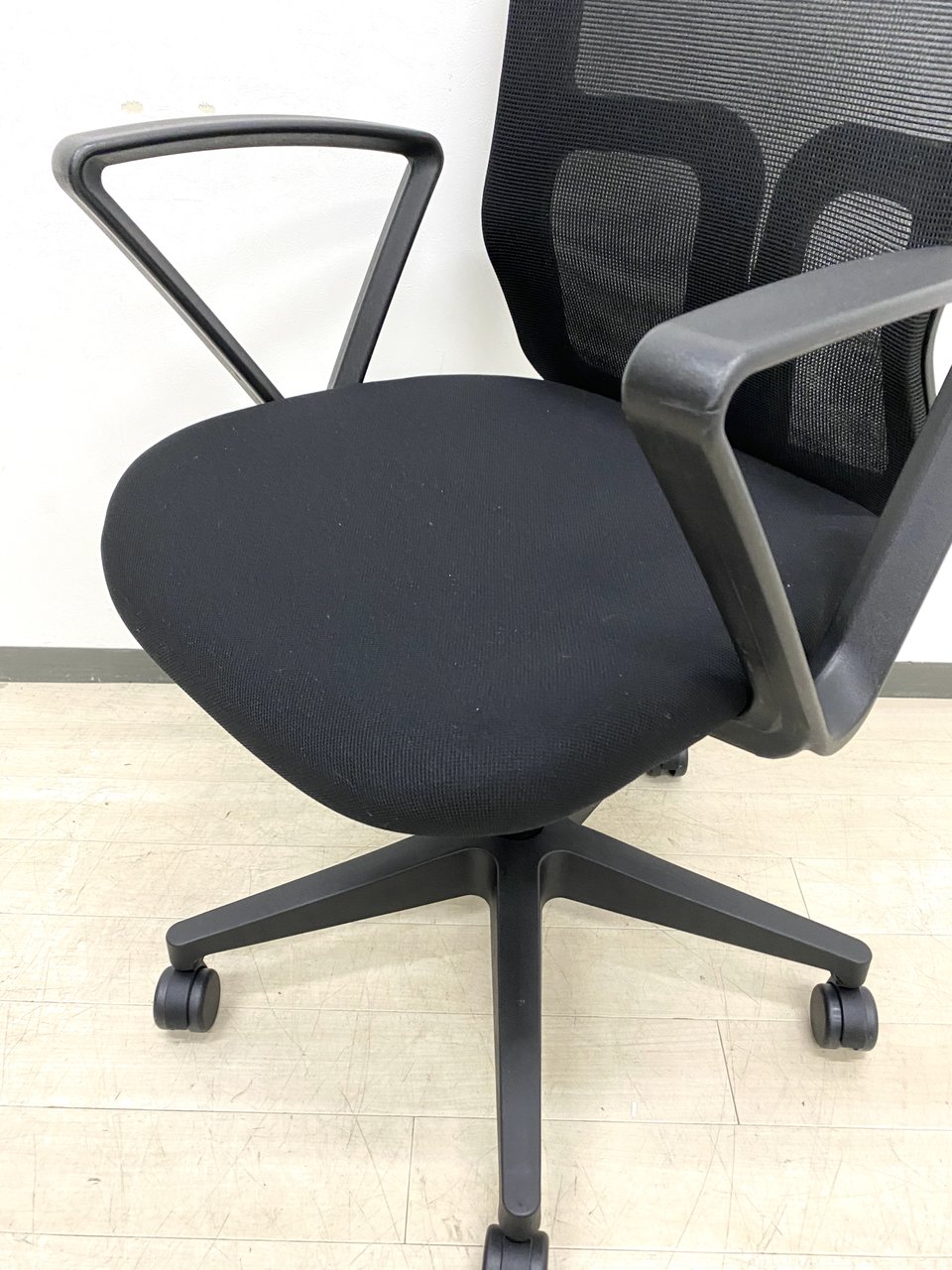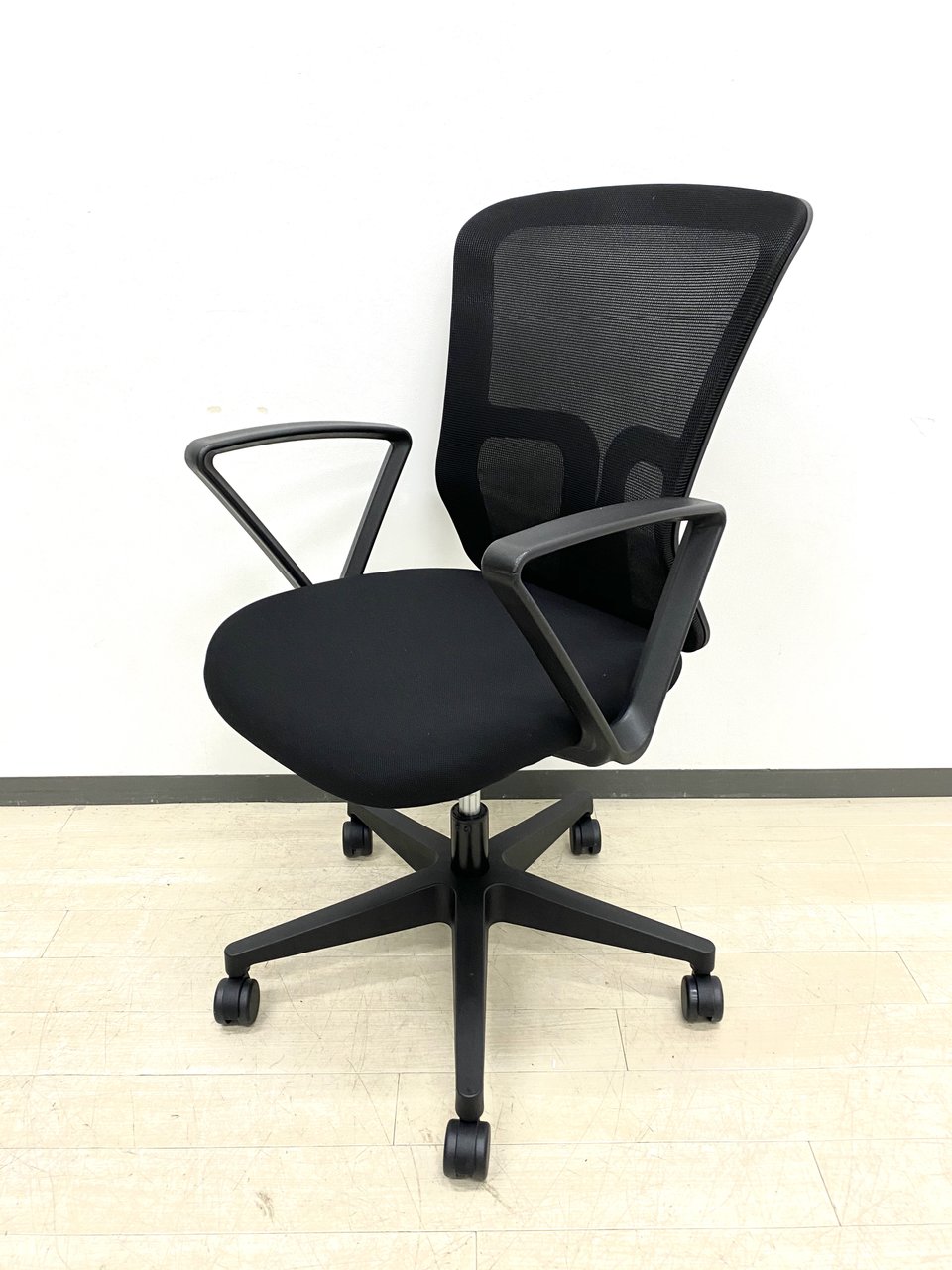 【柏倉庫在庫品】 新品/事務用椅子/肘付/T字タイプ【美品】【メッシュチェア】ブラック