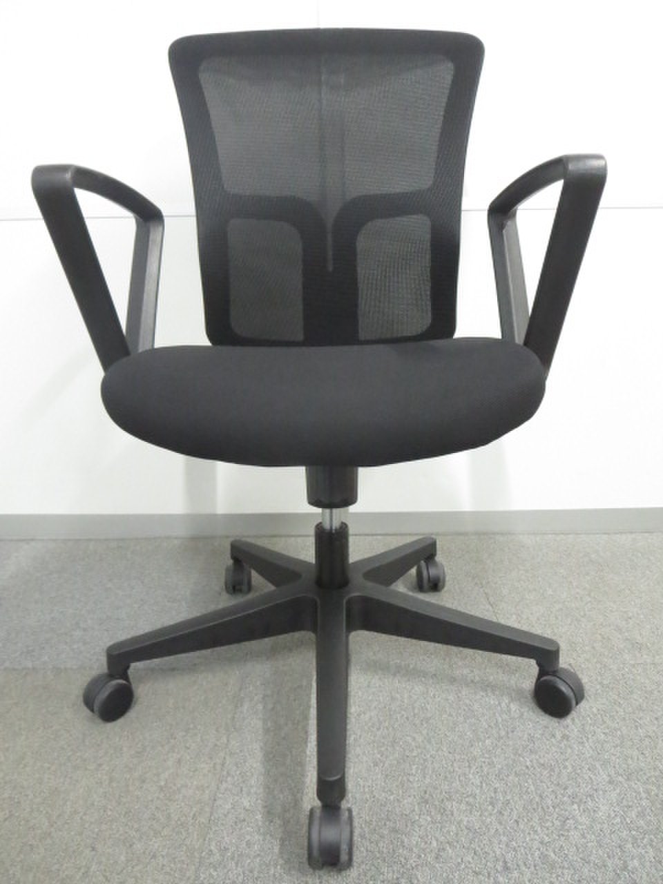 【未開封品がお買い得!】■メッシュバックチェア 肘付 ブラック【おつとめ品】【J】- 川崎店