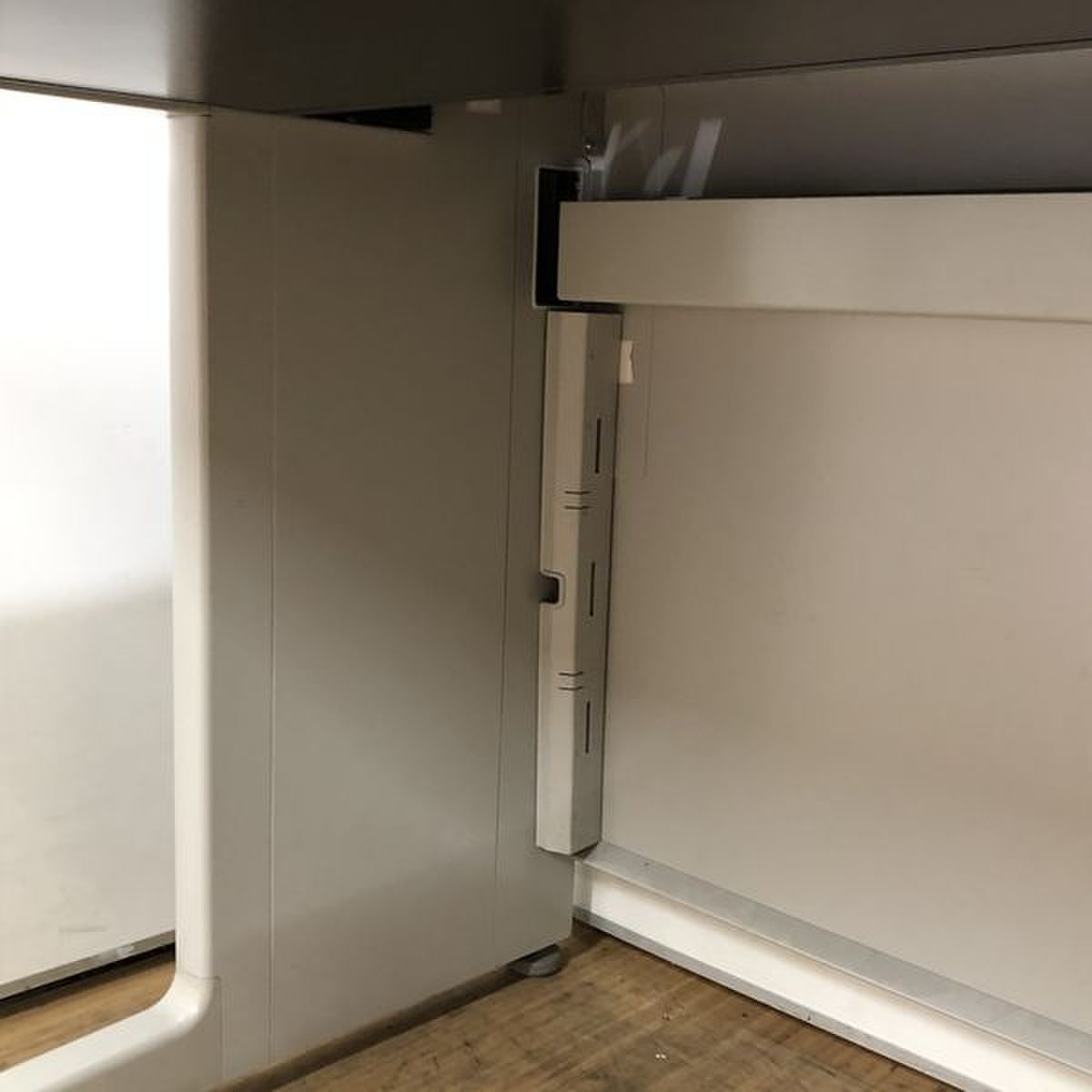 - 袖机のワゴンは、最下段がロング引出しになっており、従来より収納力120%アップ。
