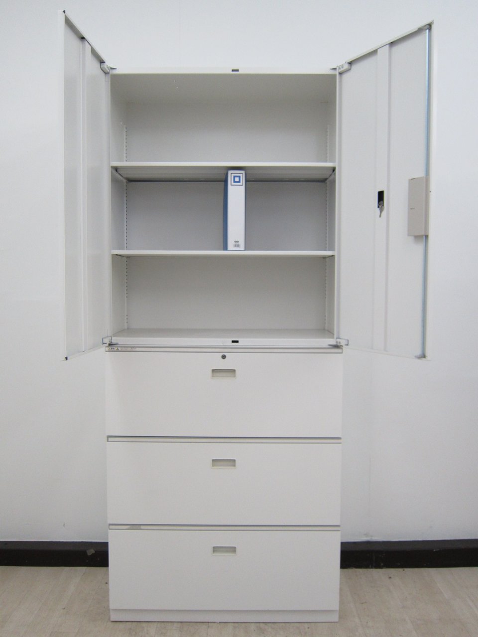 【オフィスを明るくするホワイト】イトーキ製 シンライン 書庫セット(3段ラテラル+両開き)【大容量収納】【シリンダー錠】