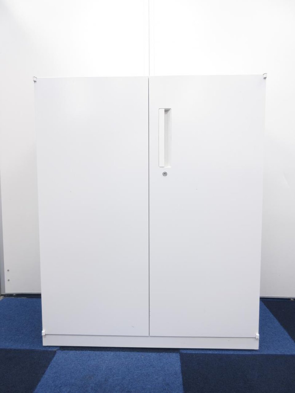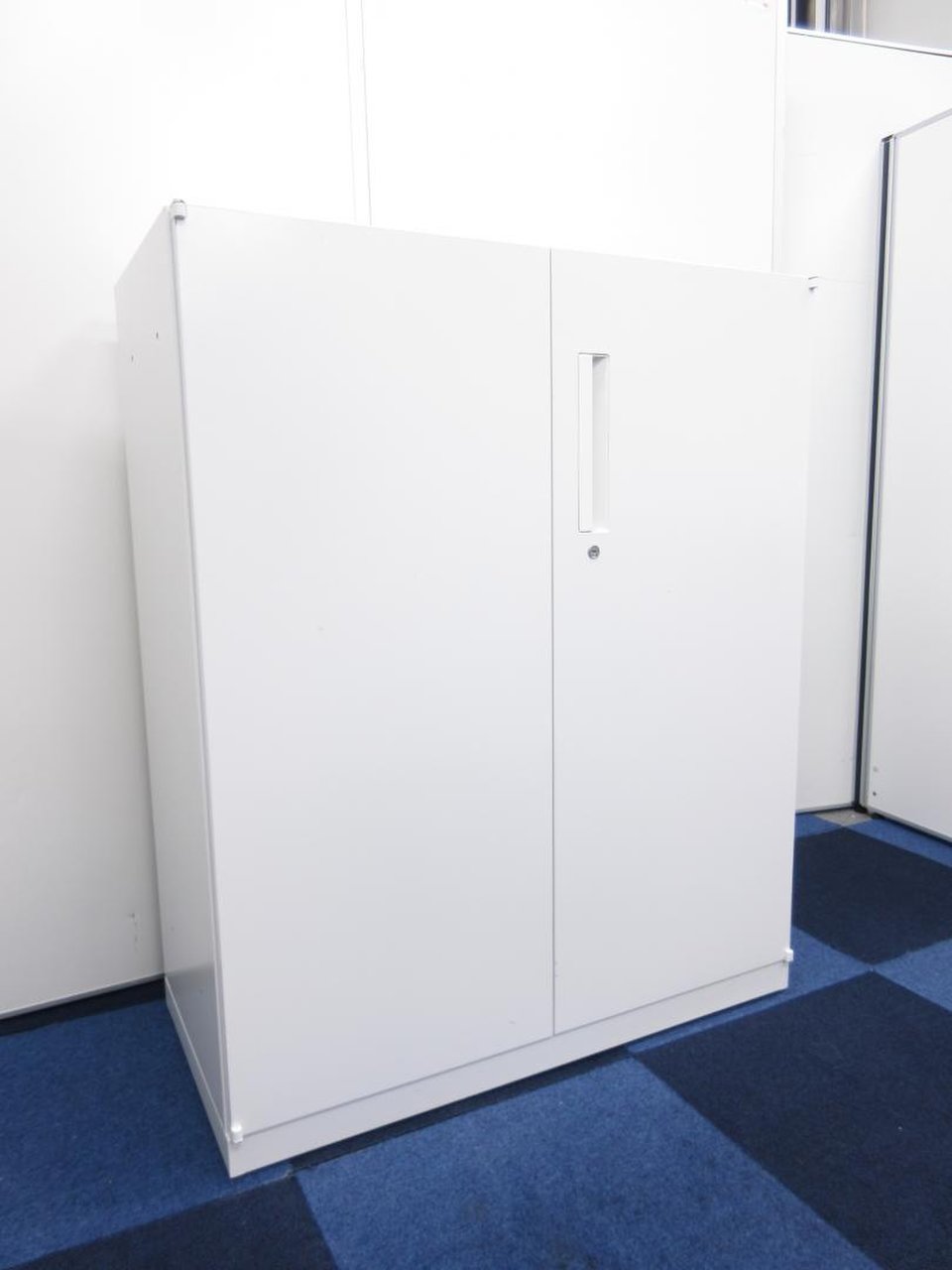 腰高サイズの両開き書庫入荷!取っ手が上部にあるので開けやすい構造です。|ホワイト|書棚 本棚 書類整理