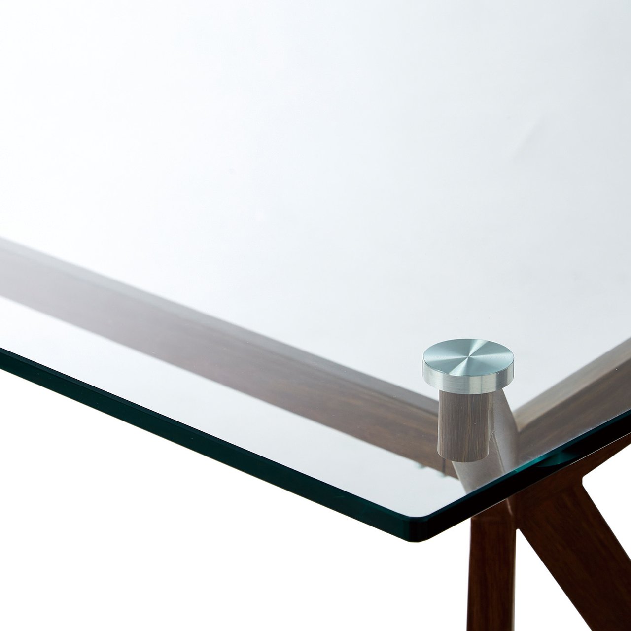 【ガラステーブル/W1800】ガラステーブルの存在感。デザイン性の高いスチール脚は、木目転写。- 全店共通商品
