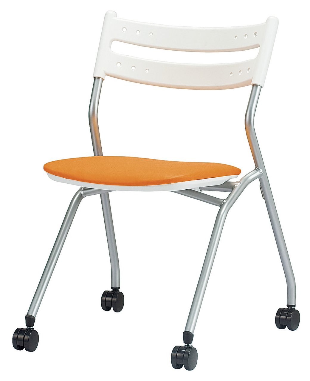 【平行スタッキングチェア】小振りで収納にも便利なキャスター付き平行スタッキングチェアです。- 全店共通商品