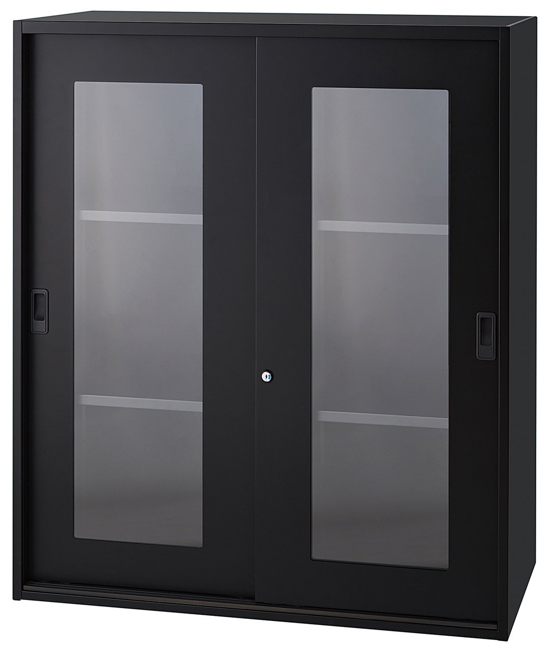 【2枚引違いガラス書庫/H1050】ブラックシリーズ!強化ガラス使用。- 全店共通商品