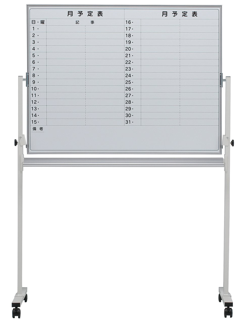 【ホワイトボード/脚付、月予定ヨコ書両面】高品質、ホーロータイプのホワイトボード。- 全店共通商品
