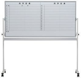 【ホワイトボード/脚付き、月予定ヨコ書き両面】高品質、ホーロータイプのホワイトボード。- 全店共通商品