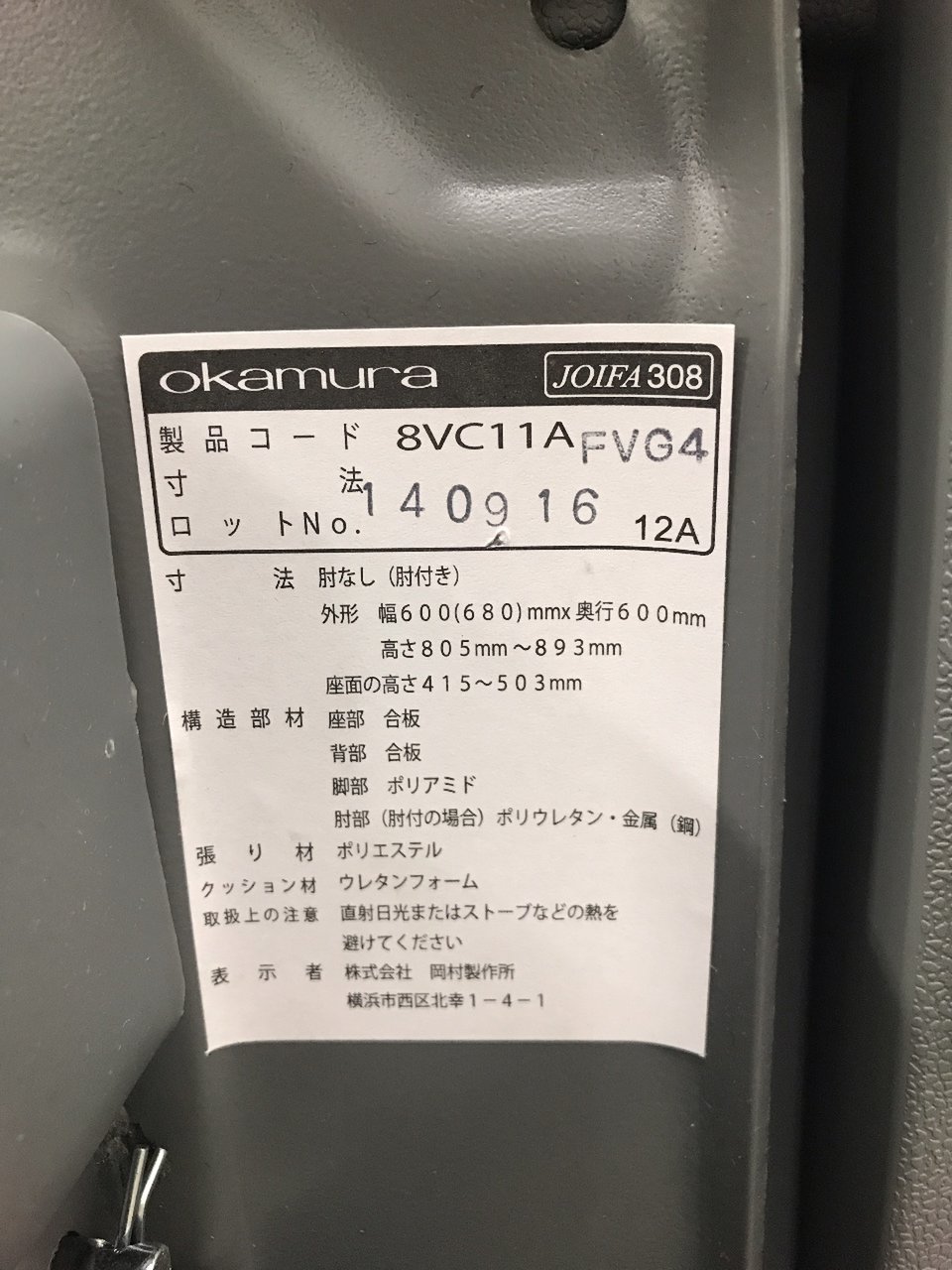 【個人チェア】【テレワーク】【中古事務用品】