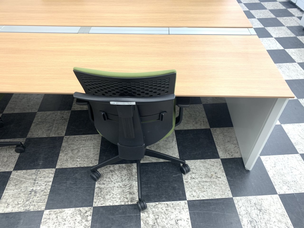 オカムラ製フリーウェイシリーズのフリーアドレスデスク(天板カラーMK38)と、