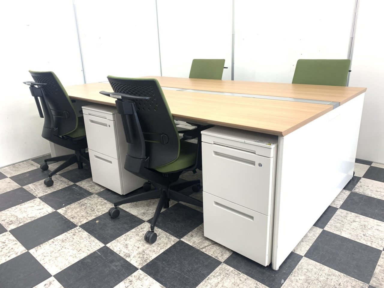 オカムラ製 プロユニットシリーズ ナチュラル天板 フリーアドレスデスク W2400サイズ 4名様用におすすえめ!!【倉庫在庫】