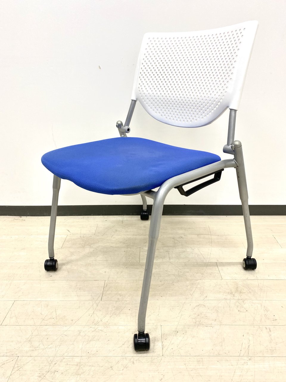 【ロット商品】オカムラ|スタッキングチェア|ブルーカラー|キャスター付きチェア!【関西倉庫在庫】