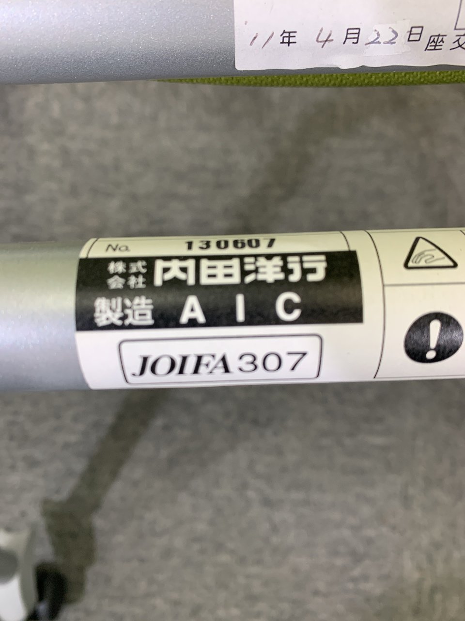 - あり黄ばみ・変色が広い範囲にうっすらある、または濃い黄ばみ・変色が一部ある。(例、座面・背もたれ、脚部等にある。)