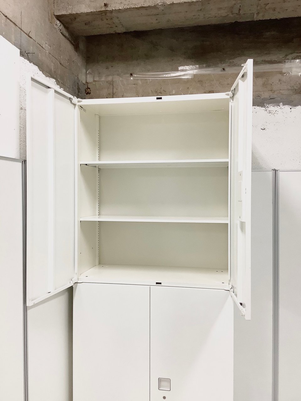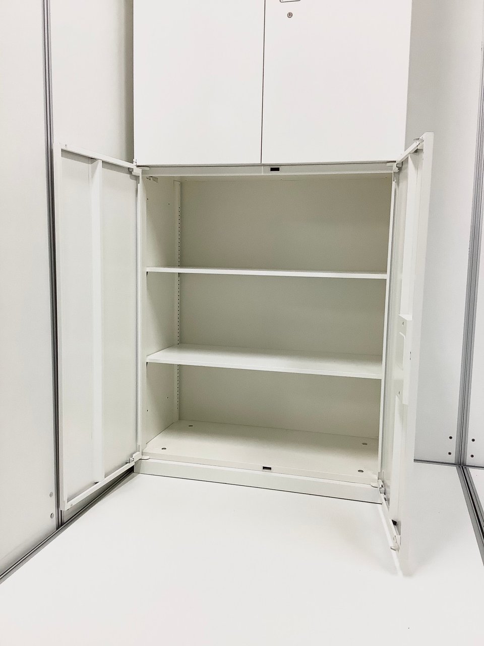 【上下書庫セット】【両開き(上)×3段ラテラル(下)】【オカムラ】【レクトライン】【ホワイト】【4台】