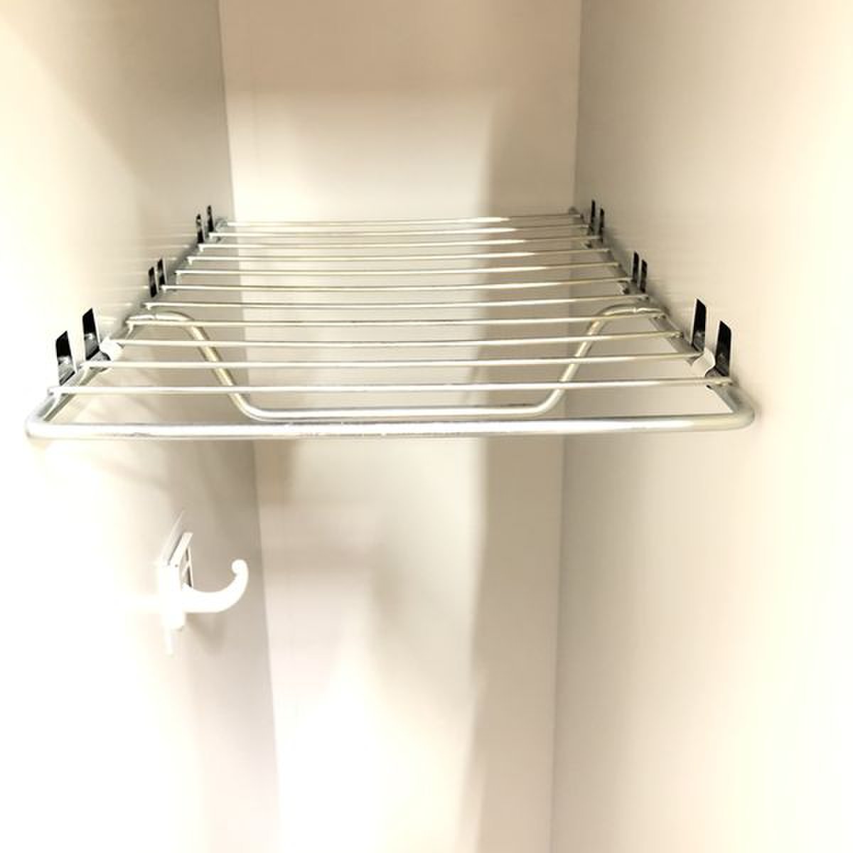 ハンガーバーはもちろん、靴置きようの網棚も付属しており、