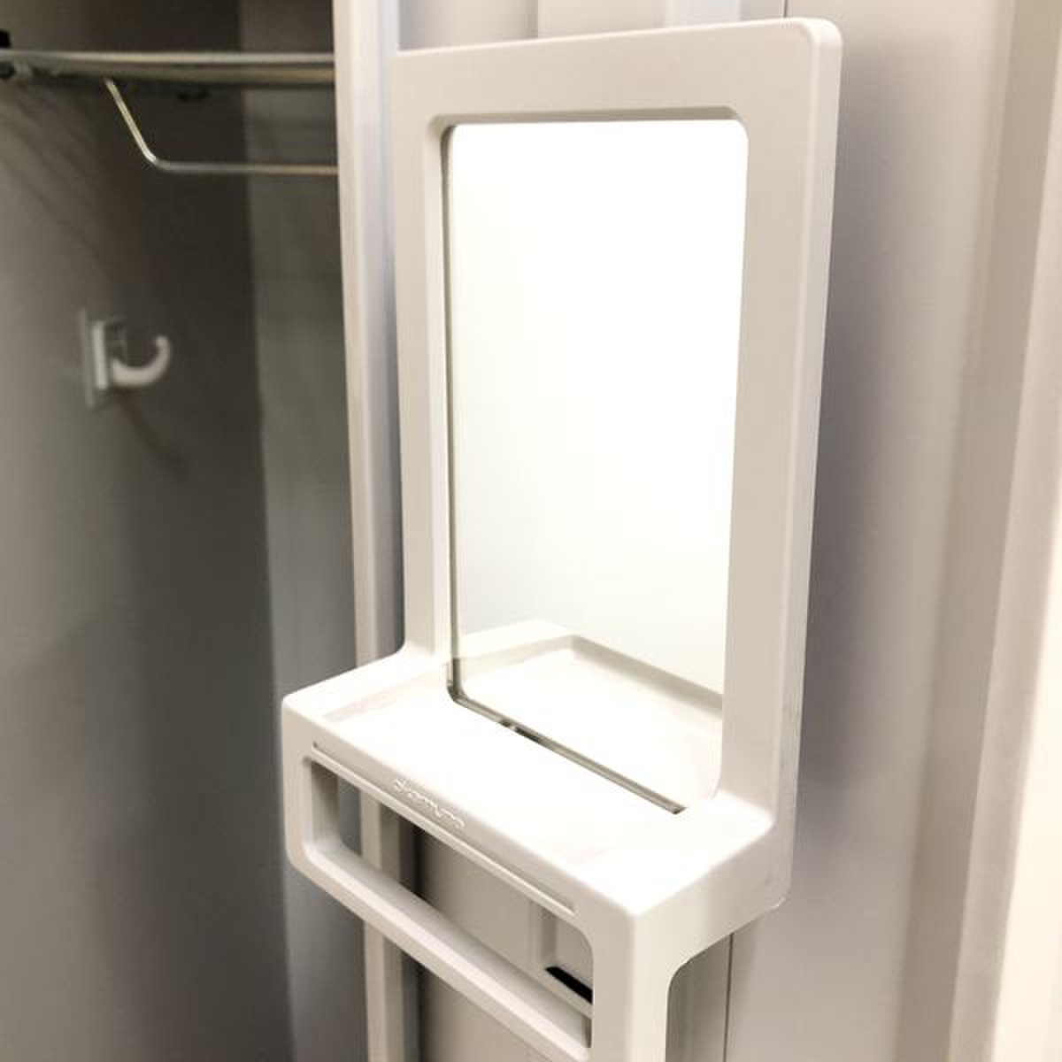 女性にうれしい鏡付きで休憩後のお化粧直しにも一役買います。