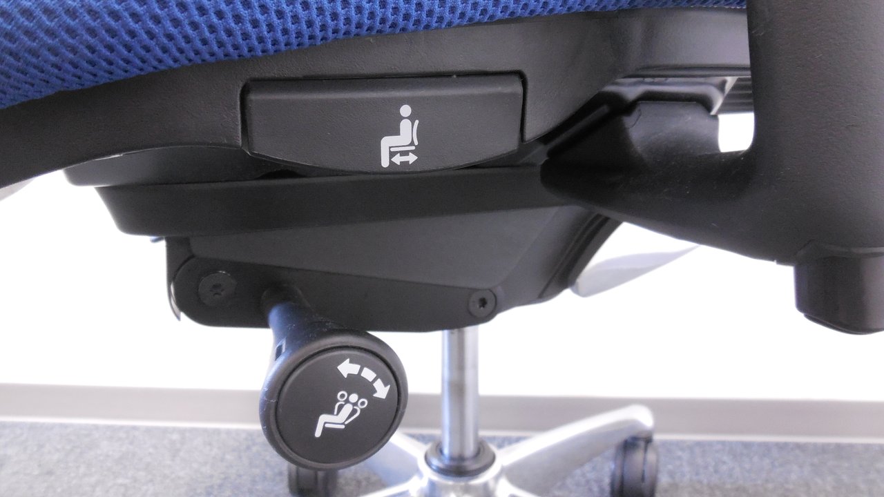 - 座面右下のレバーをスライドさせる「クイックスライドオペレーション」で、リクライニング反力を調整できます。強さの状態が視覚的にわかるため、直感的に操作がおこなえます。